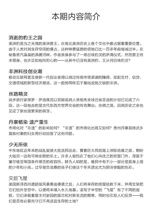 美国《国家地理》中文版(《华夏地理》杂志)由美国国家地理学会独家授权。每月同步刊出美国《国家地理》杂志原版内容及本土原创专题故事,以独特视角、高质量影像、真实故事呈现华夏、探索世界,同步全球前沿新知。