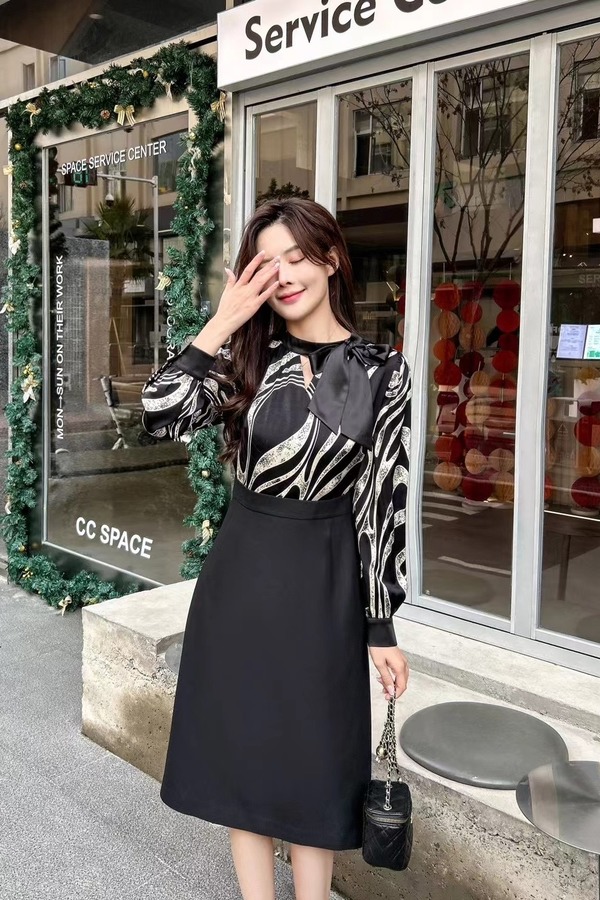 ELLA JADE 艺术印花光泽感收腰连衣裙 19835