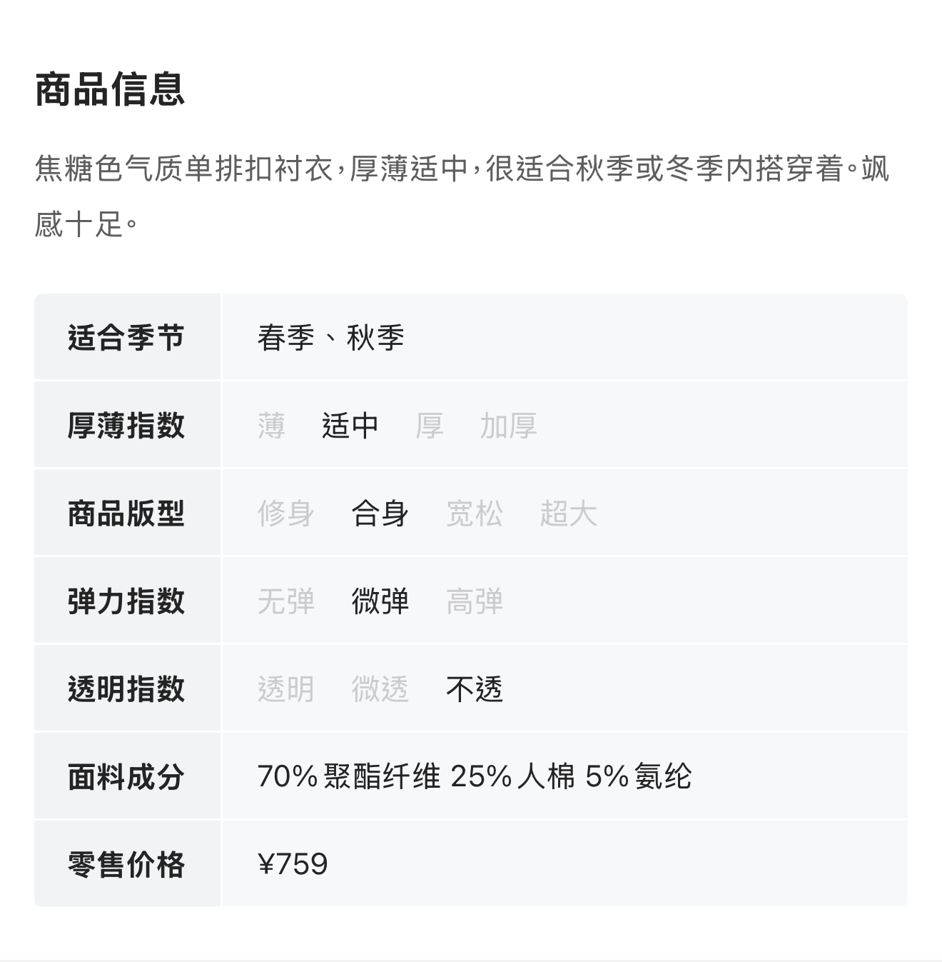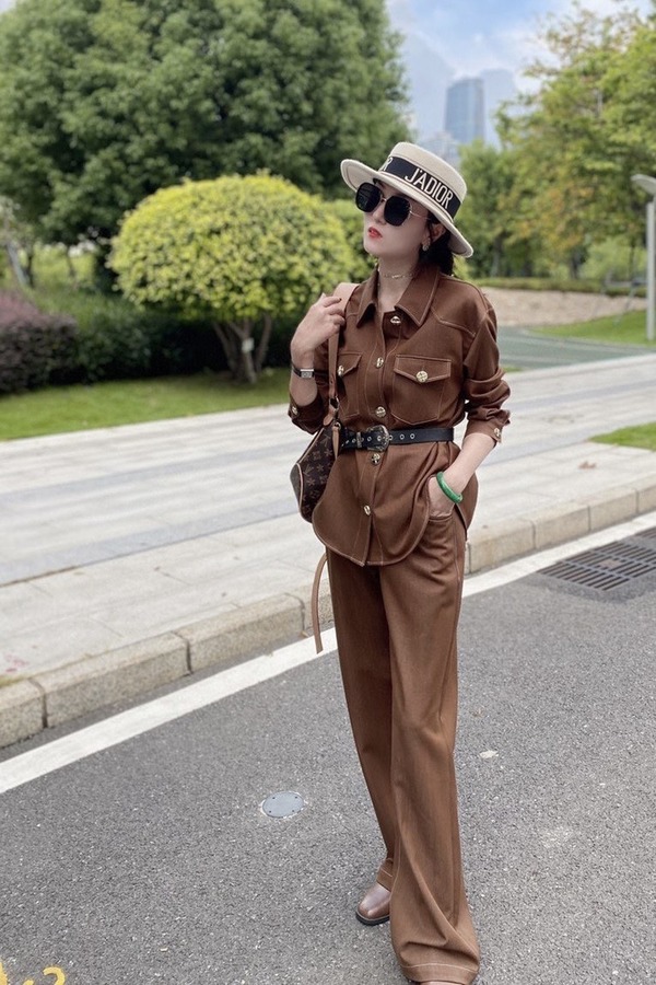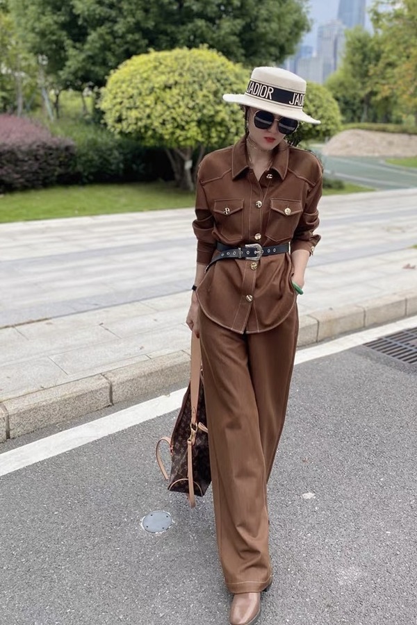 Kai & Kiera 气质单排扣焦糖色衬衣 17009