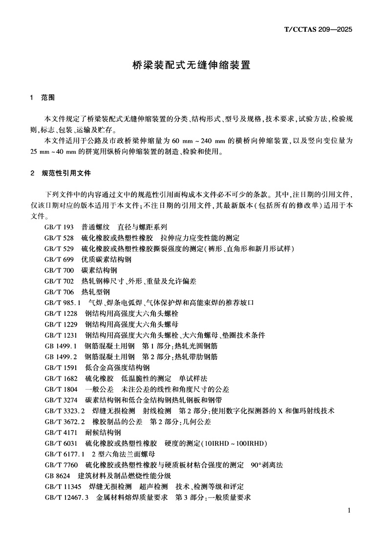 书名:桥梁装配式无缝伸缩装置T/CCTAS 209—2025