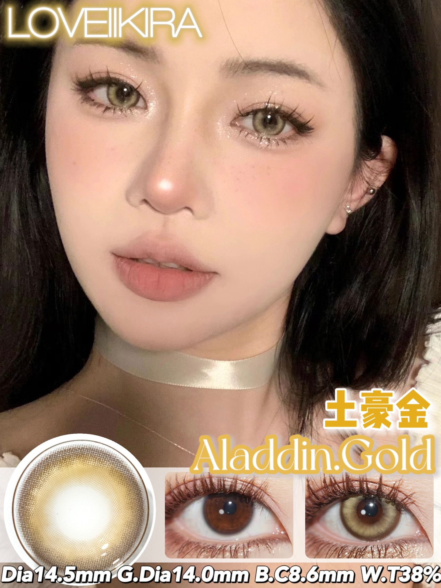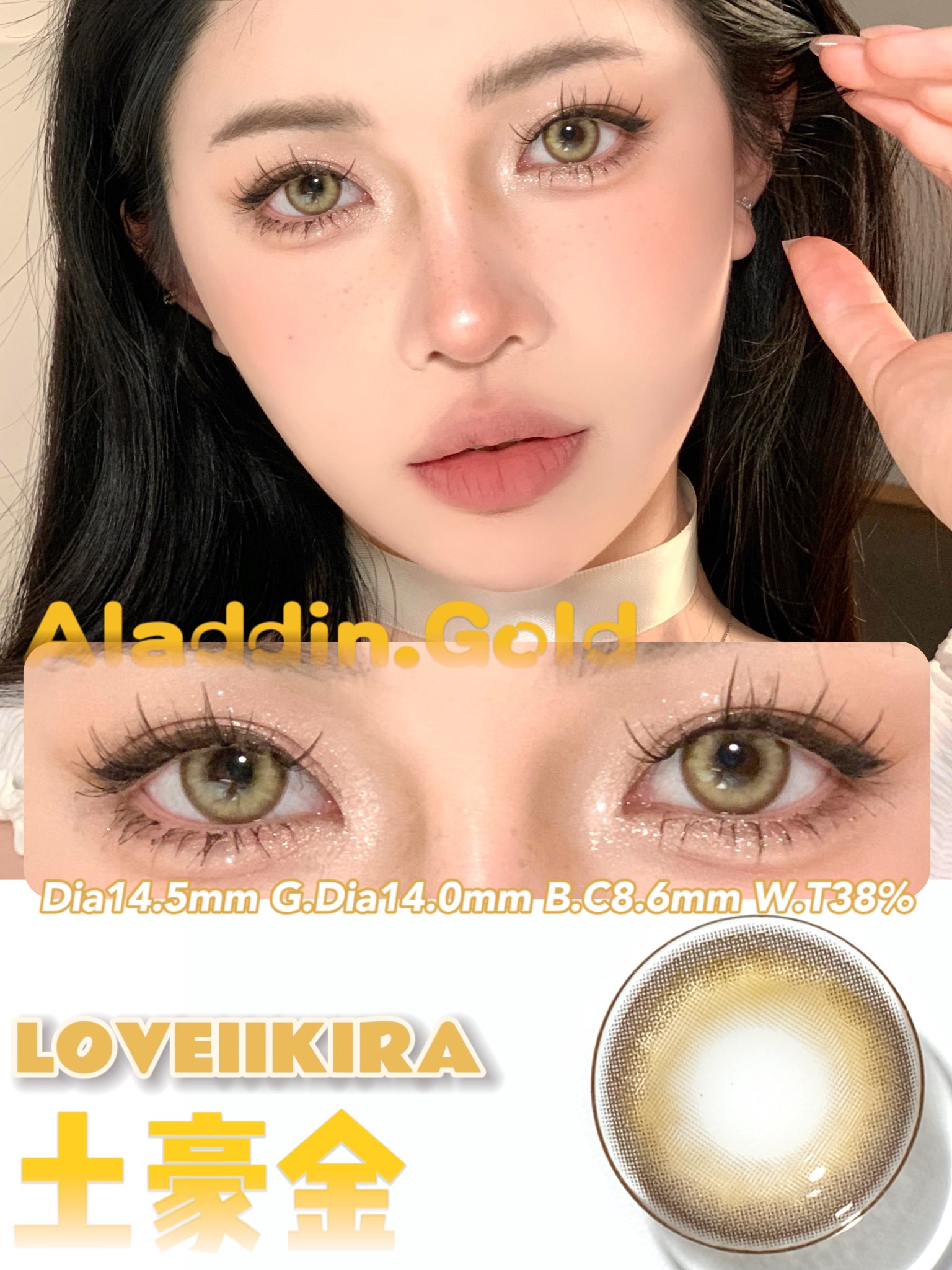 【年抛】土豪金 Loveiikira | 大直径14.5,着色14.0 | 【同品牌多副更划算选款完整色板内】金色