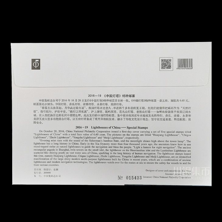 内置票品:中国灯塔大版票*1张,小版张*1张,首日封*封。
