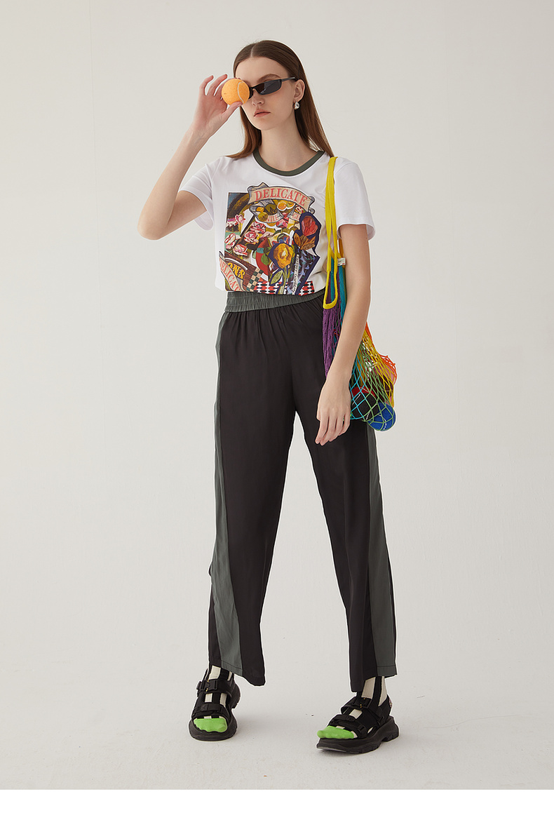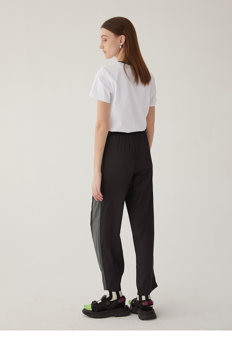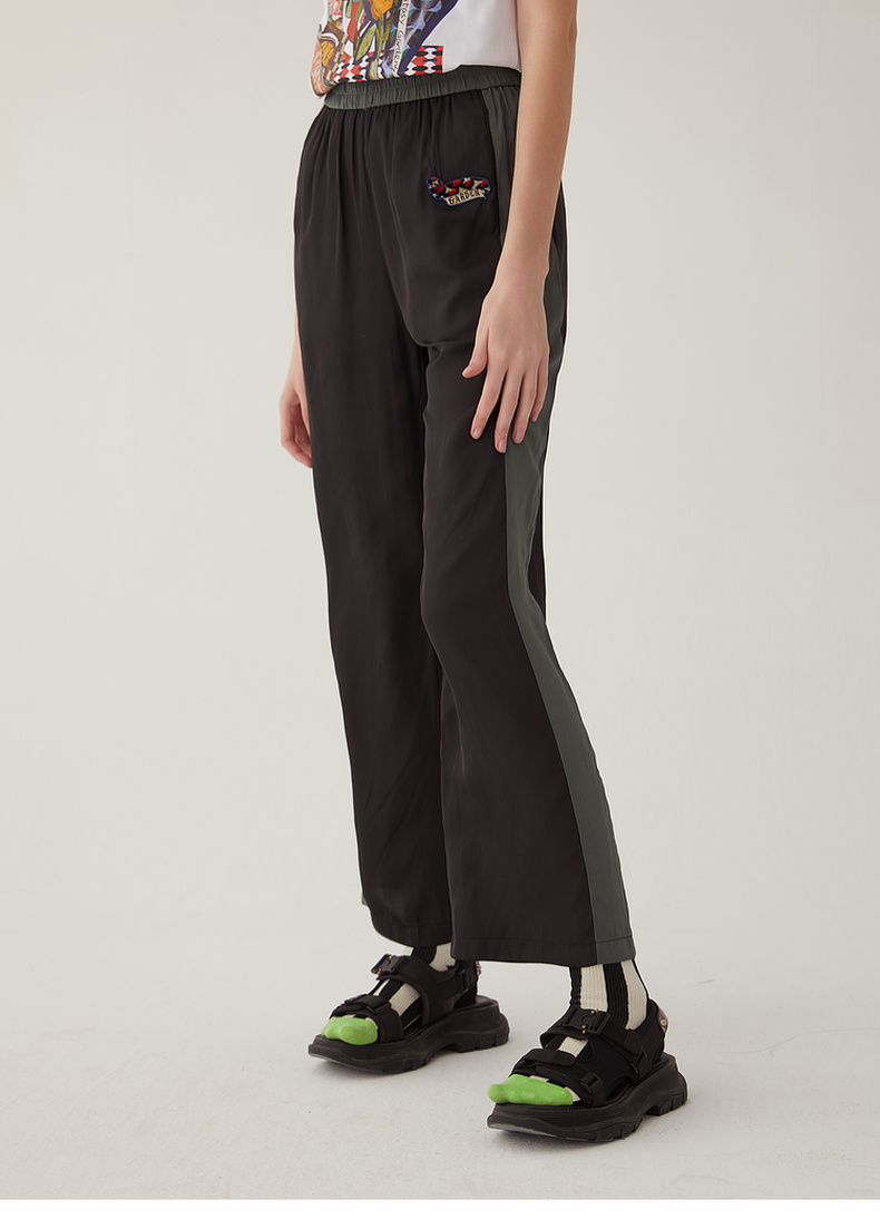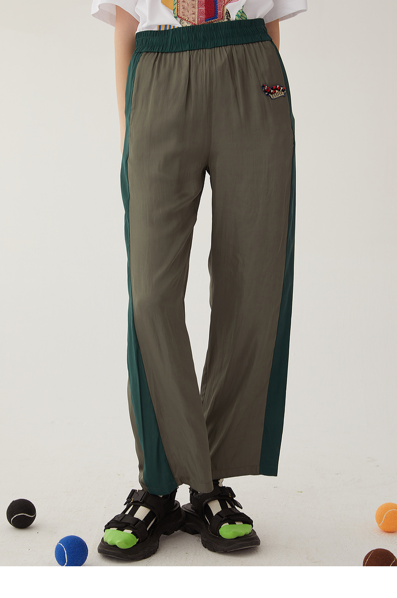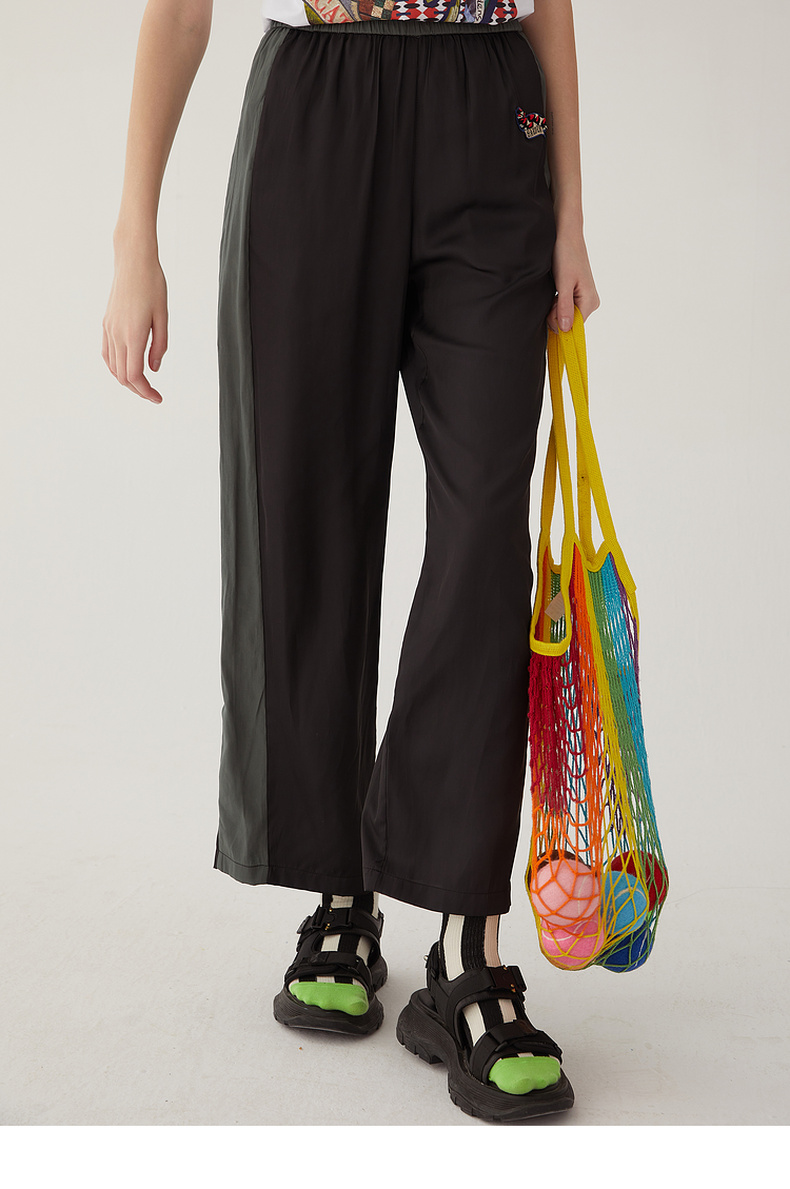 谜底雪纺直筒裤长裤女2024夏款时尚拼色轻薄亲肤休闲裤246MK7020