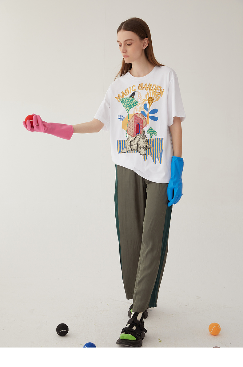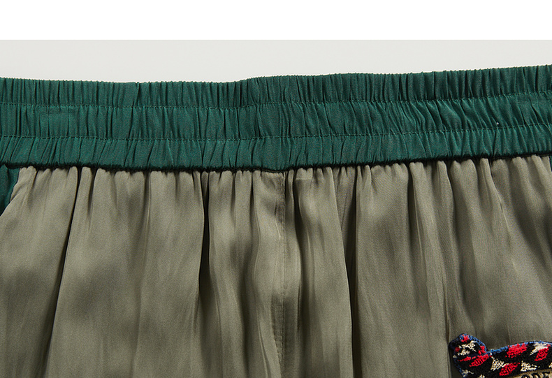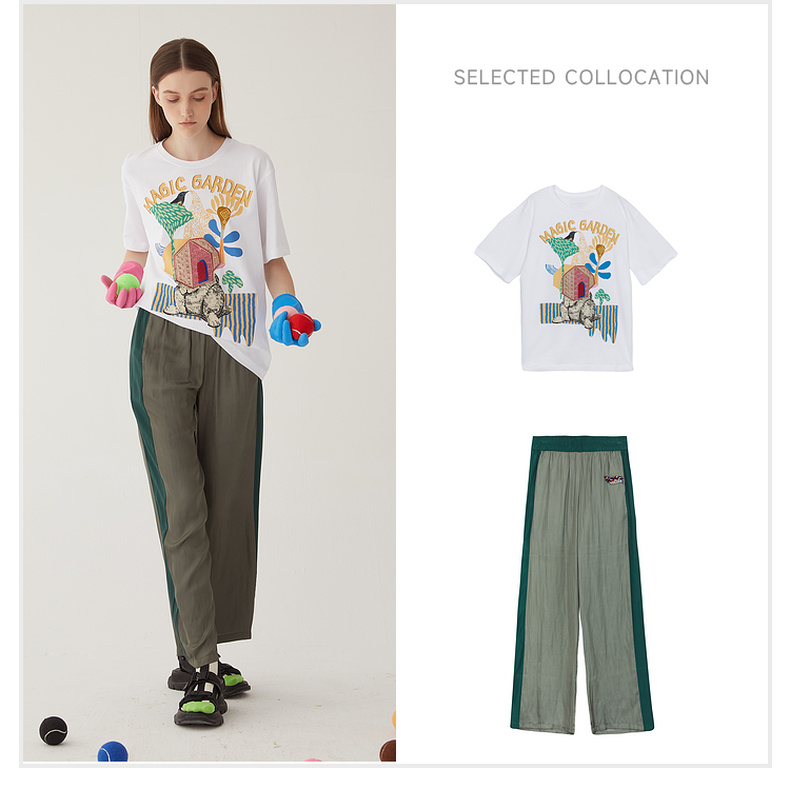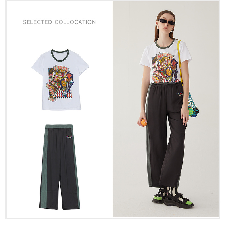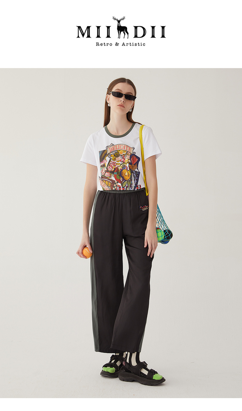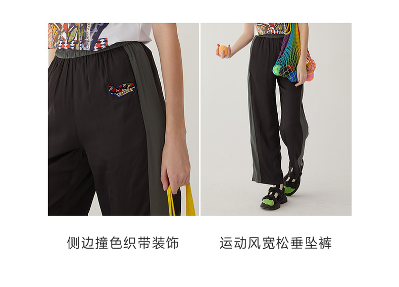 谜底雪纺直筒裤长裤女2024夏款时尚拼色轻薄亲肤休闲裤246MK7020