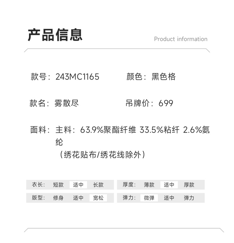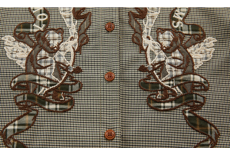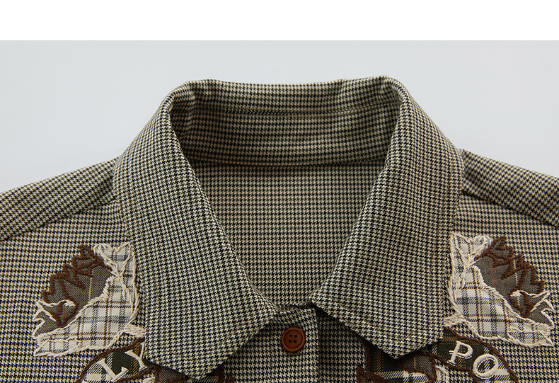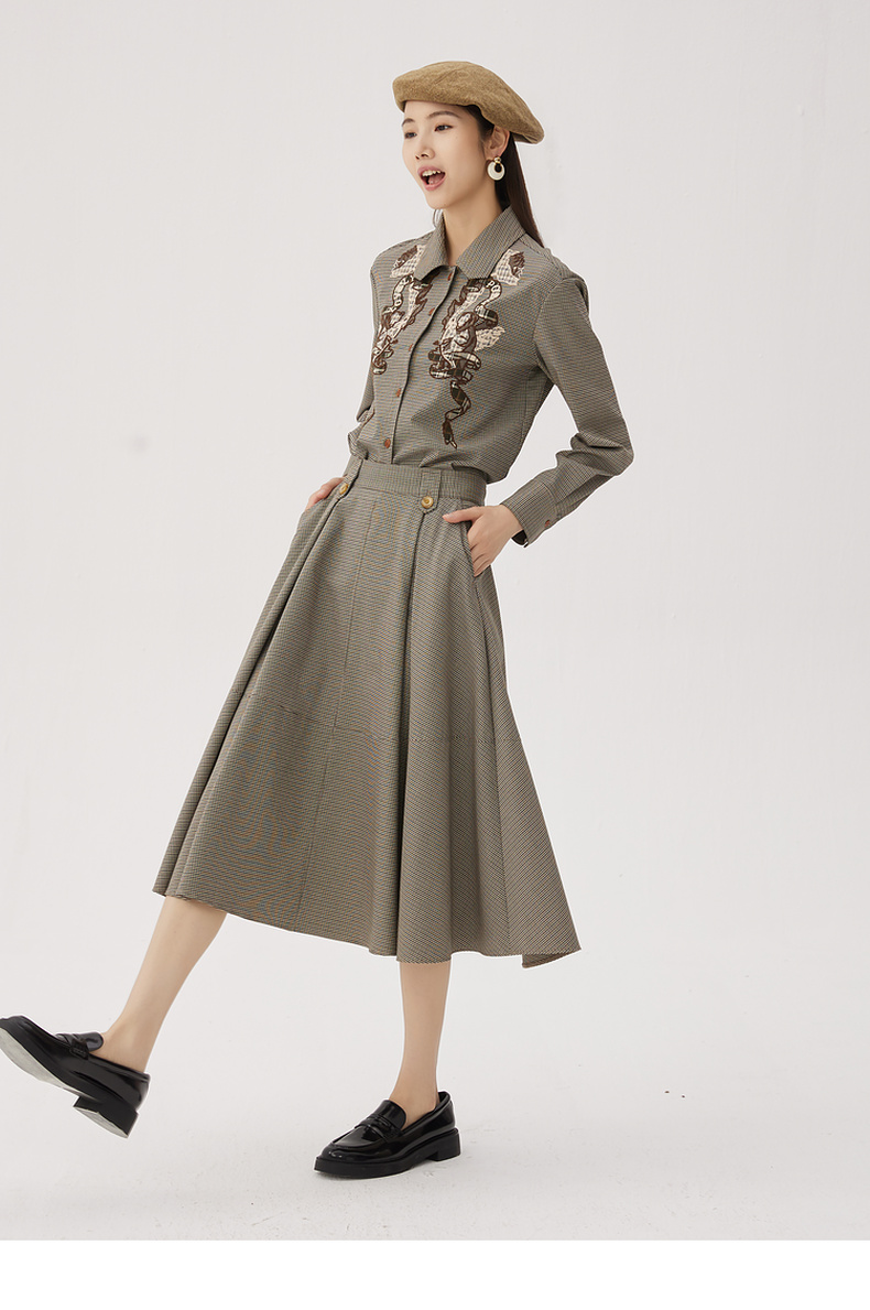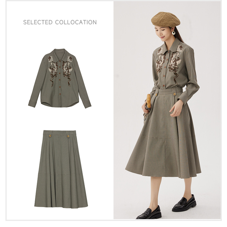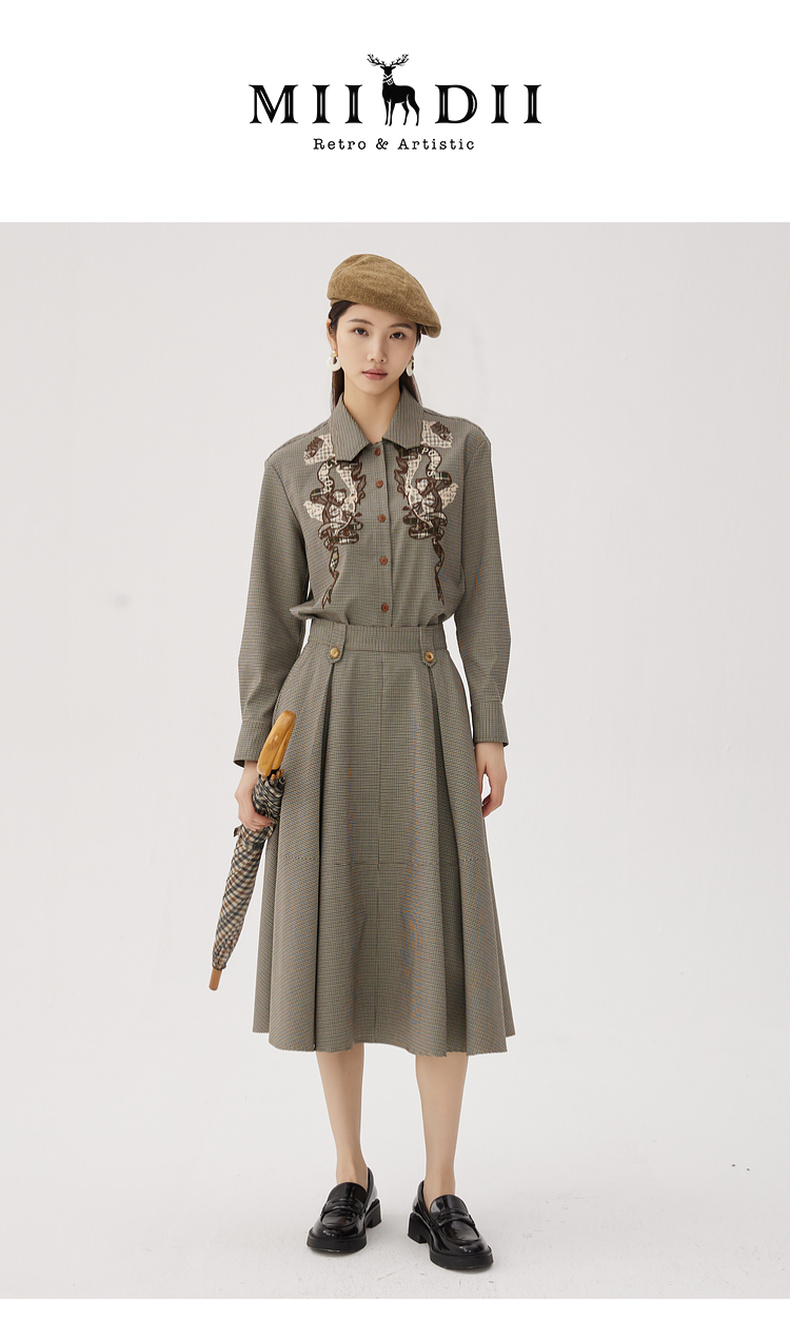 谜底千鸟格衬衫长袖女2024秋季新品复古风绣花H型衬衣243MC1165