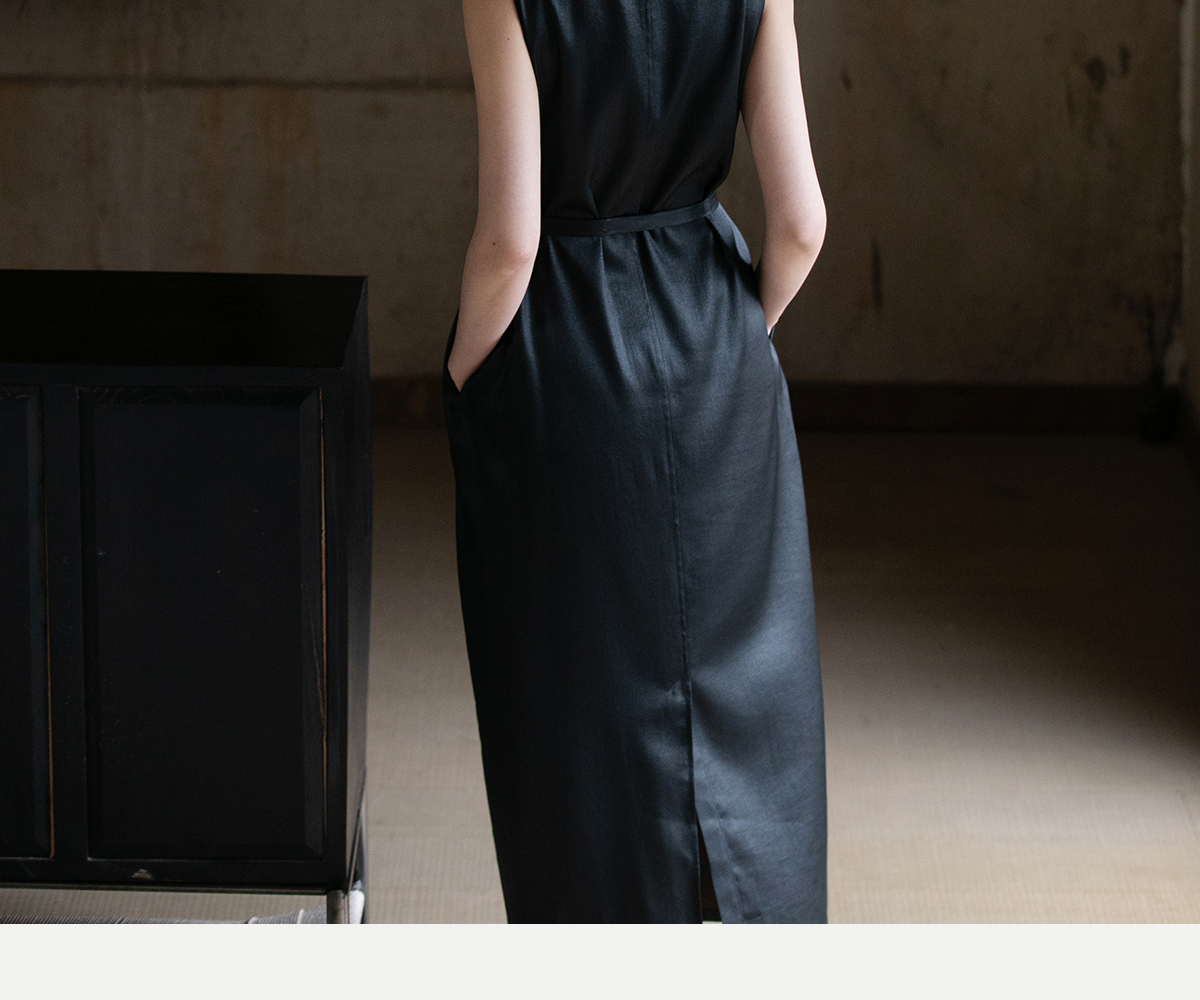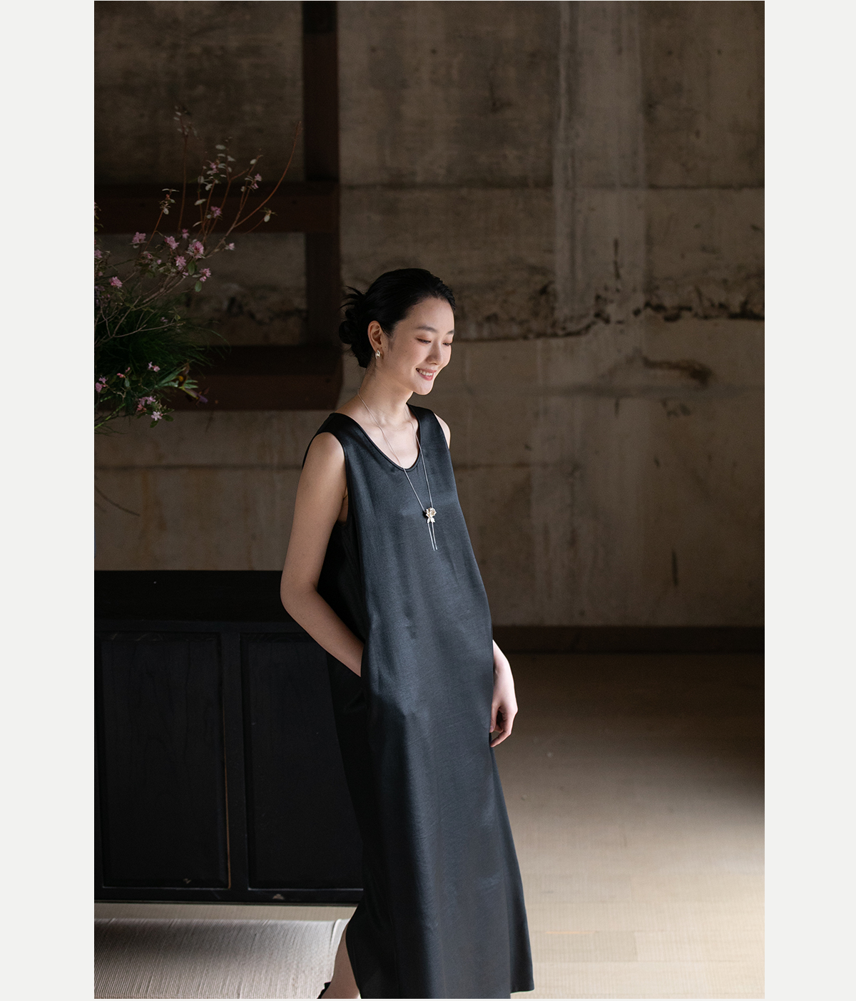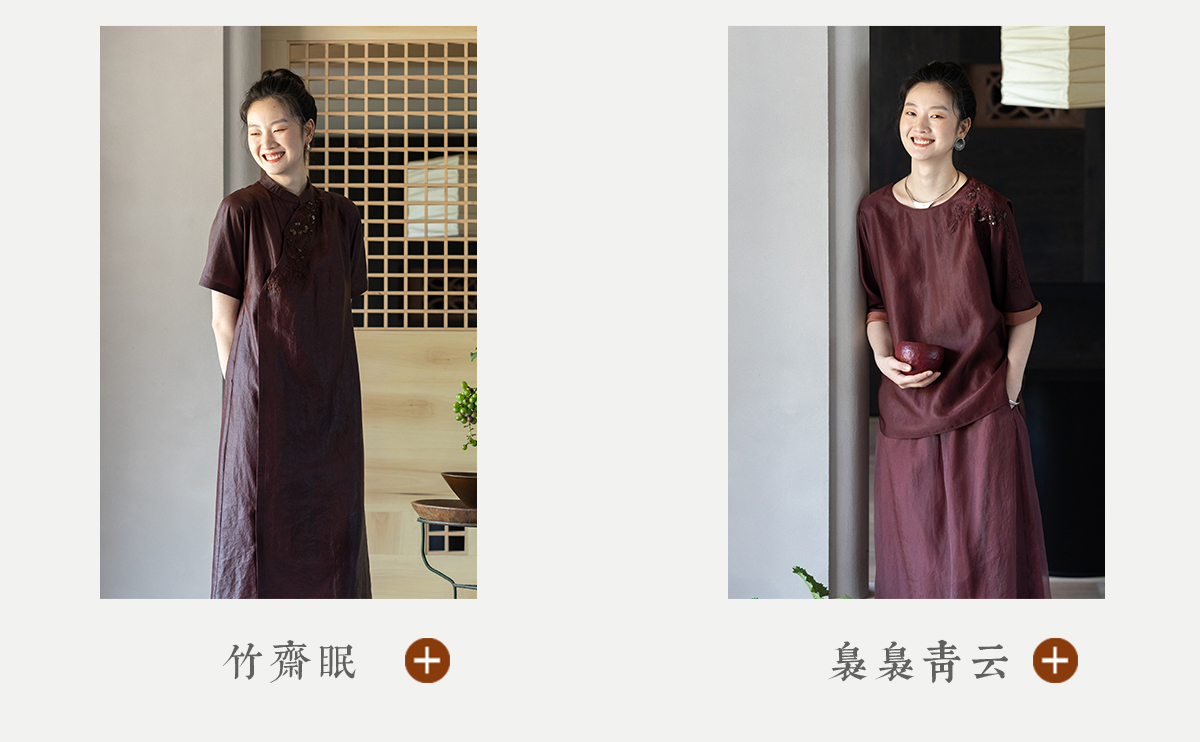 牧衣游原创净色香云纱连衣裙气质 限量福利款 桃枝扇不支持会员折