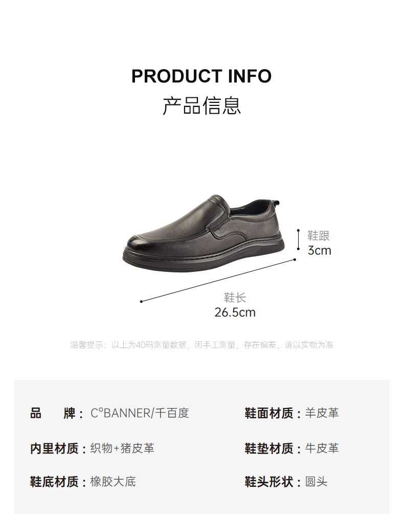 千百度2026春季柔感鞋高级羊皮革柔软细腻男时尚休闲鞋A26155102