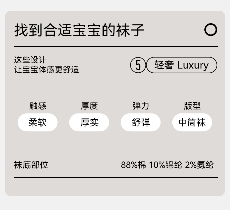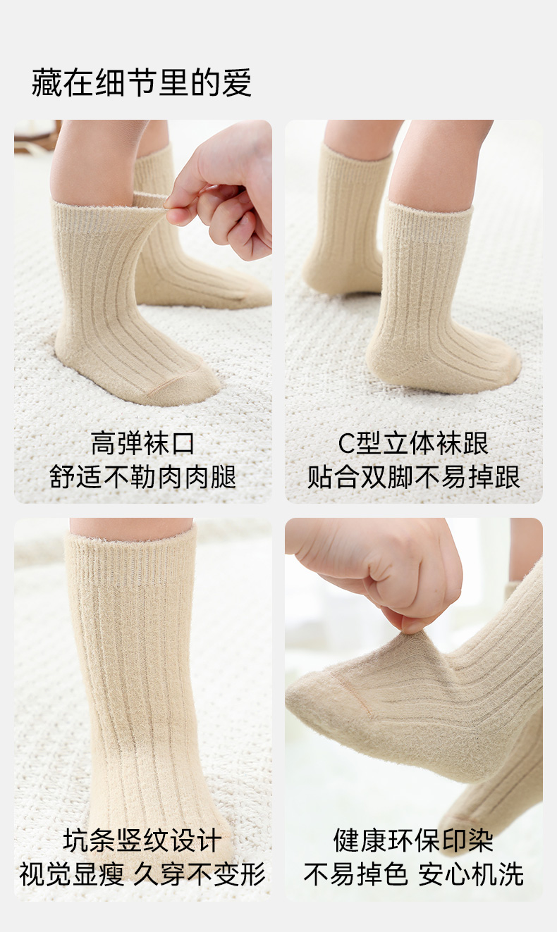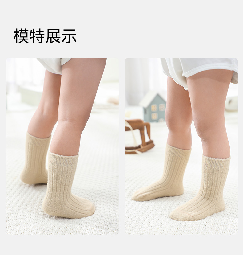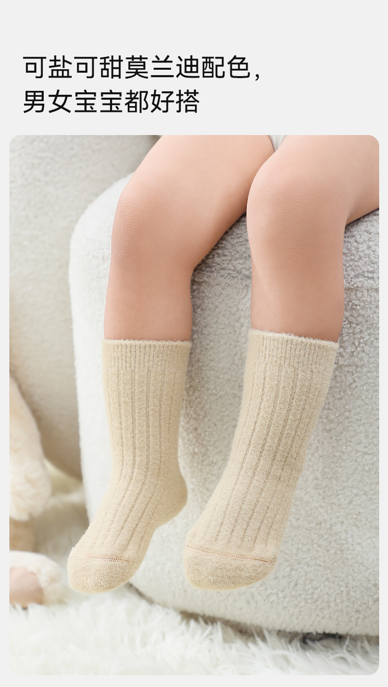 【母婴服配】EMXEE嫚熙宝宝袜子秋冬男女童双面绒无骨抗菌婴幼儿纯色中筒袜