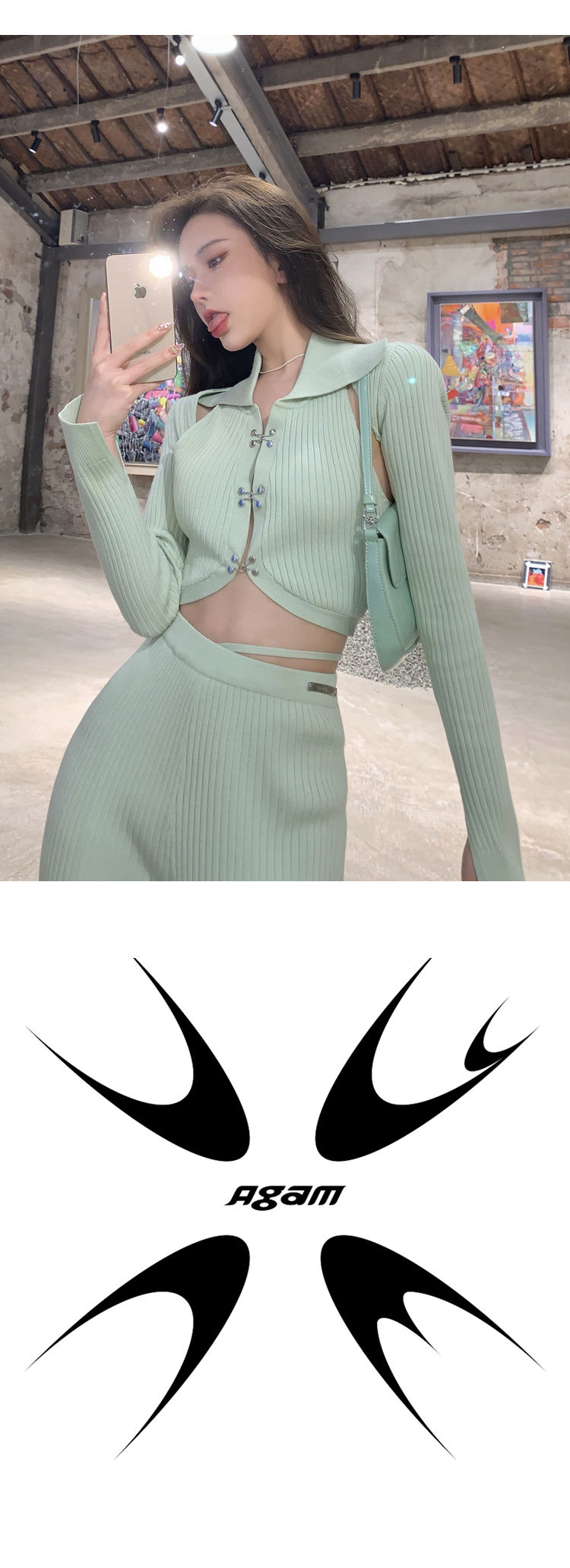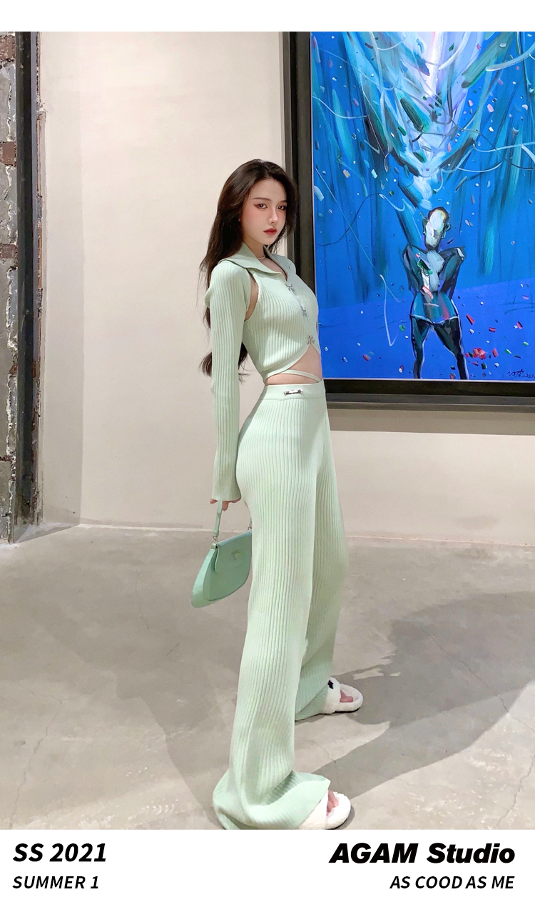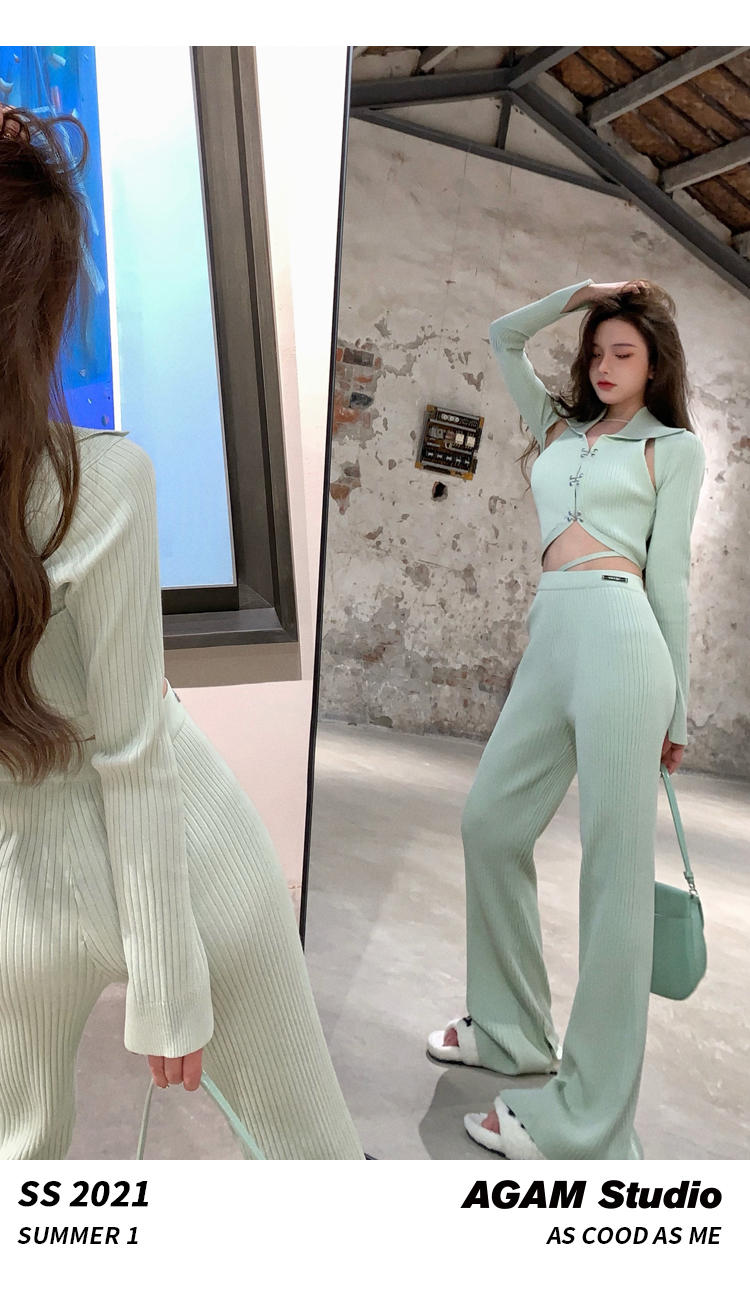 AGAM STUDIO 原创小众设计高级感修身显瘦露腰针织喇叭休闲长裤