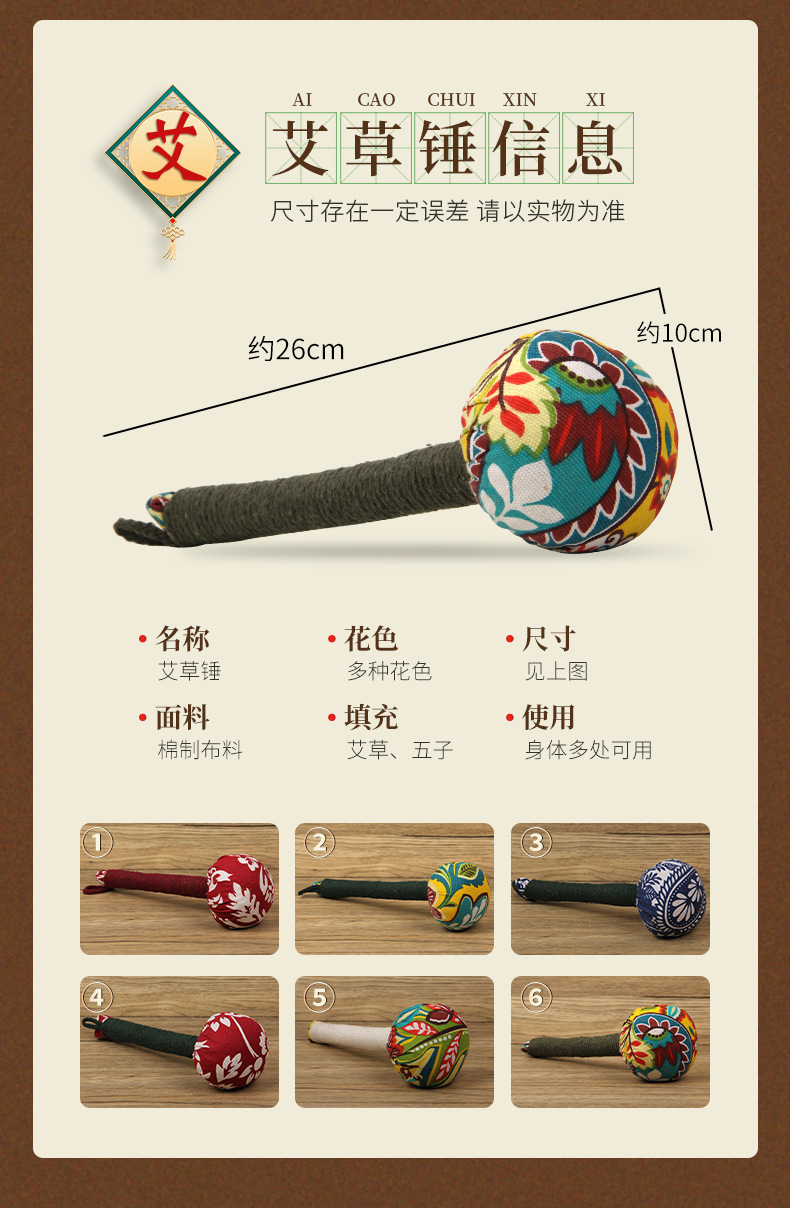 【艾草锤】添加多味中yao 、三年陈艾草、保健、养生、捶背神器 采用新疆棉,图案随机,27cm左右