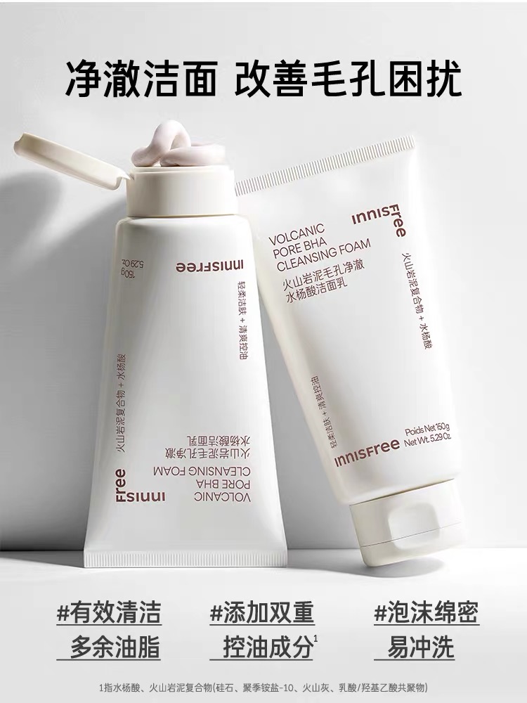innisfree悦诗风吟洗面奶控油火山泥水杨酸新升级毛孔净澈150ml