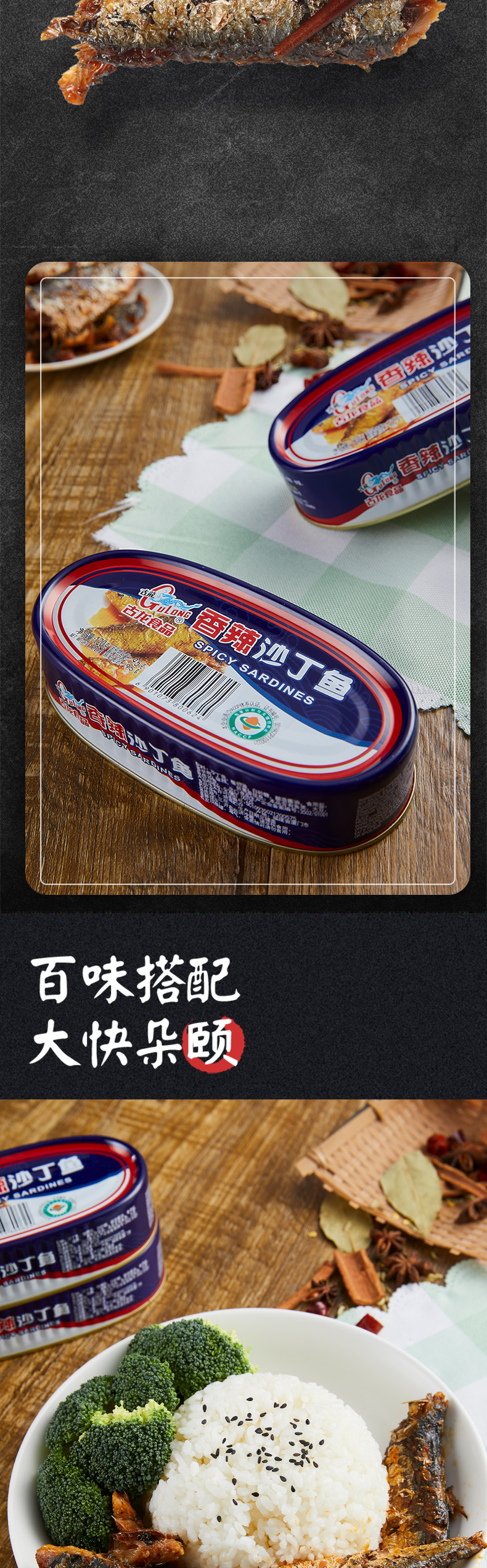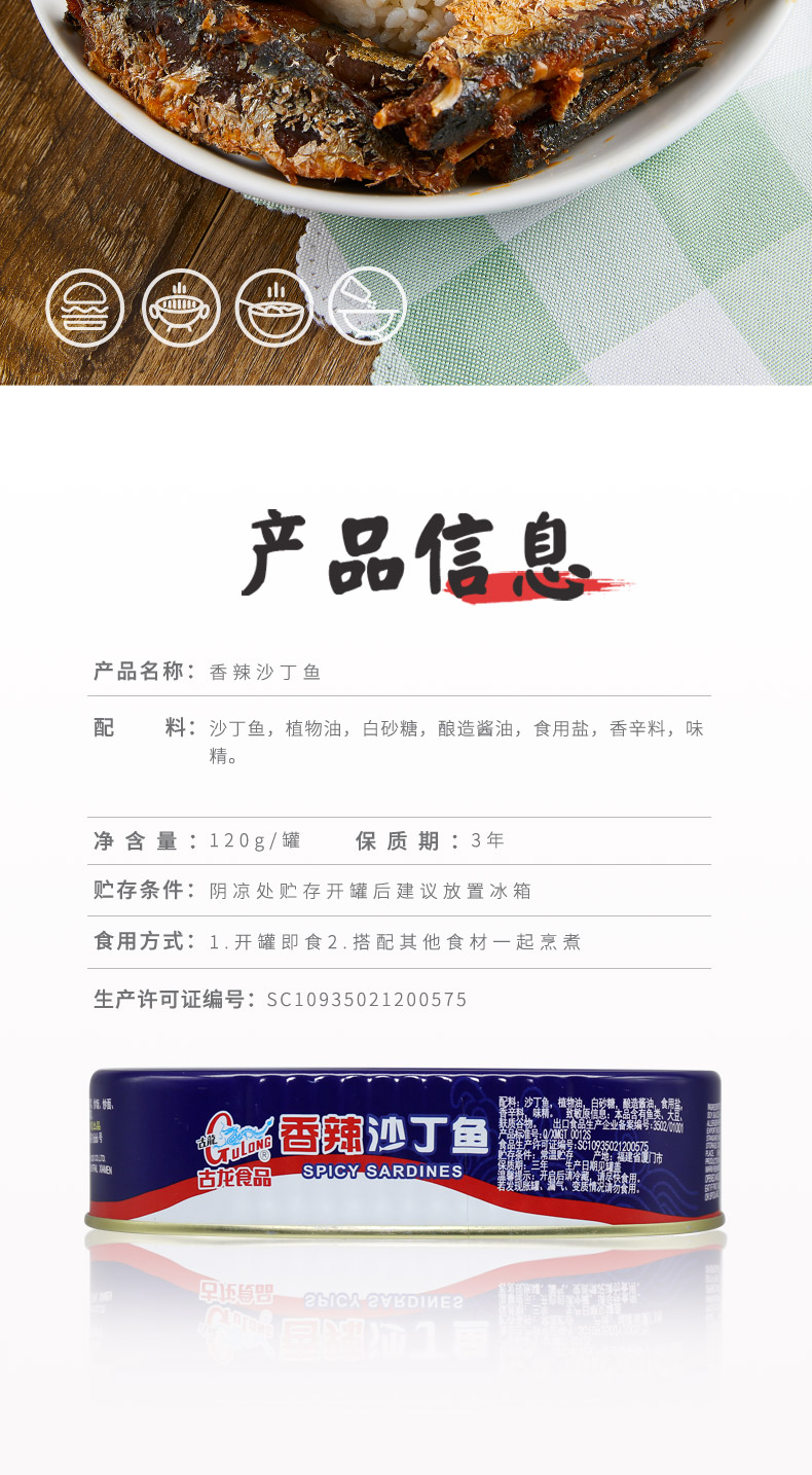古龙食品香辣沙丁鱼罐头海味即食零食特产小吃麻辣熟食凉菜120g*6
