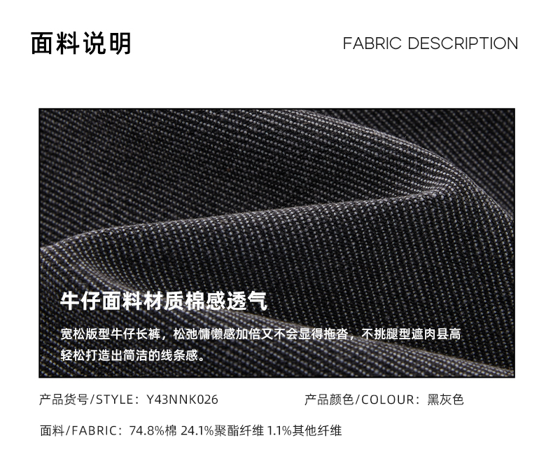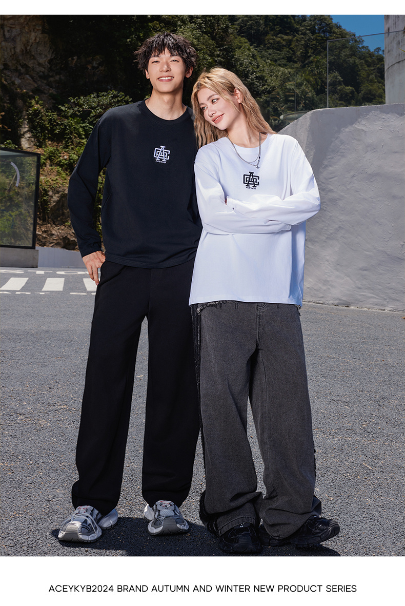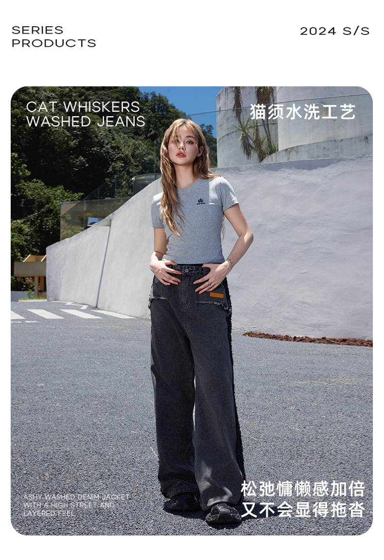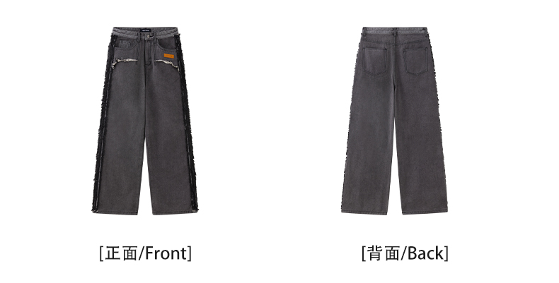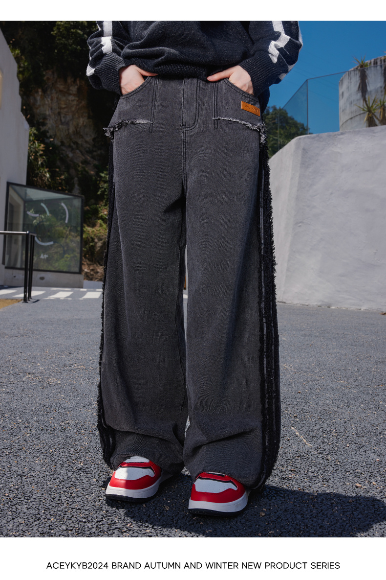 ACEYKYB秋季长裤新款猫须毛边水洗黑裤子潮流美式街头宽松直筒牛仔裤