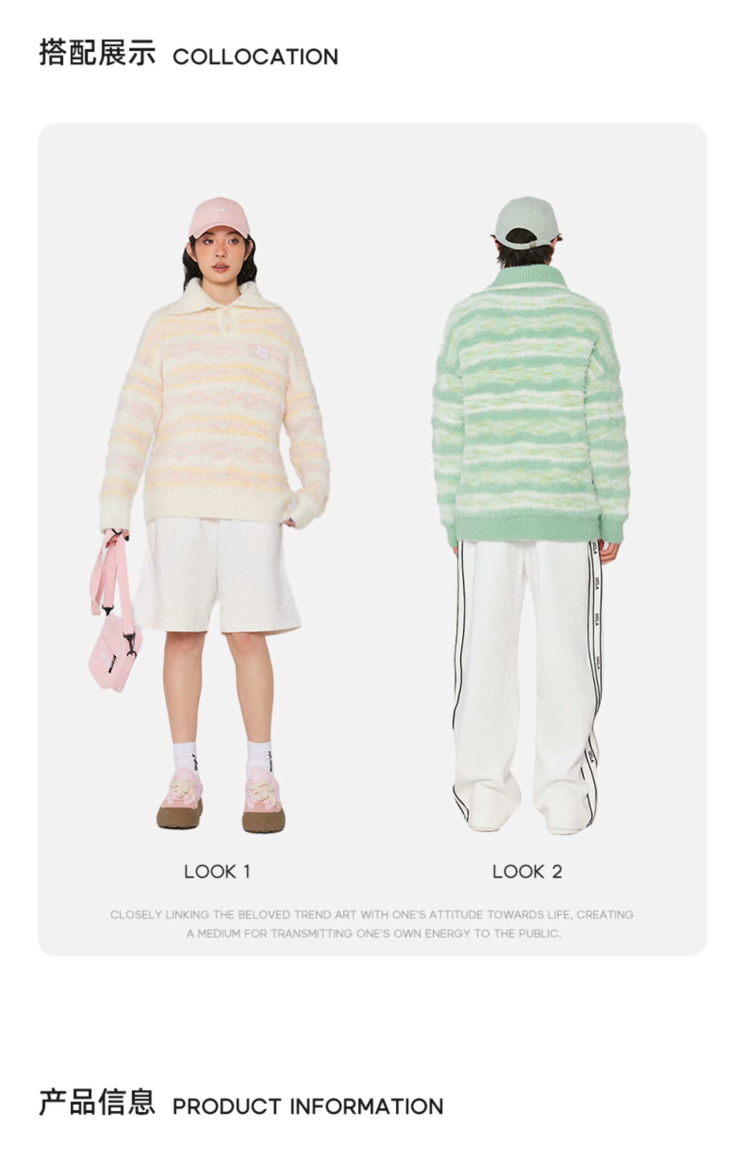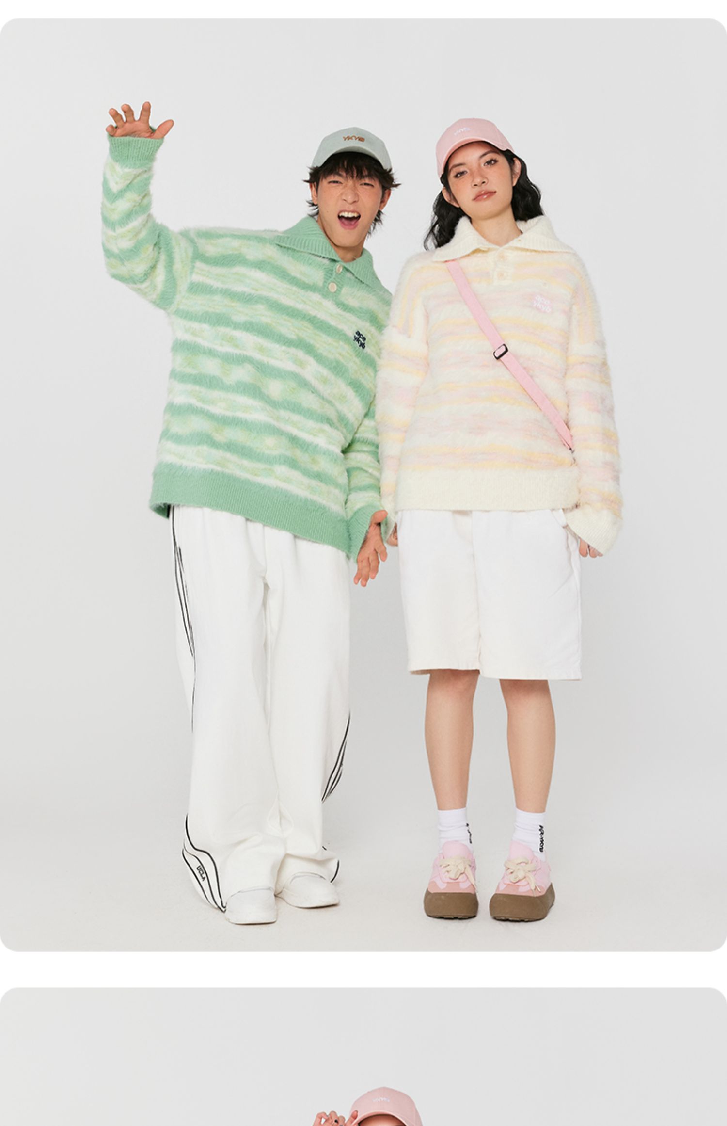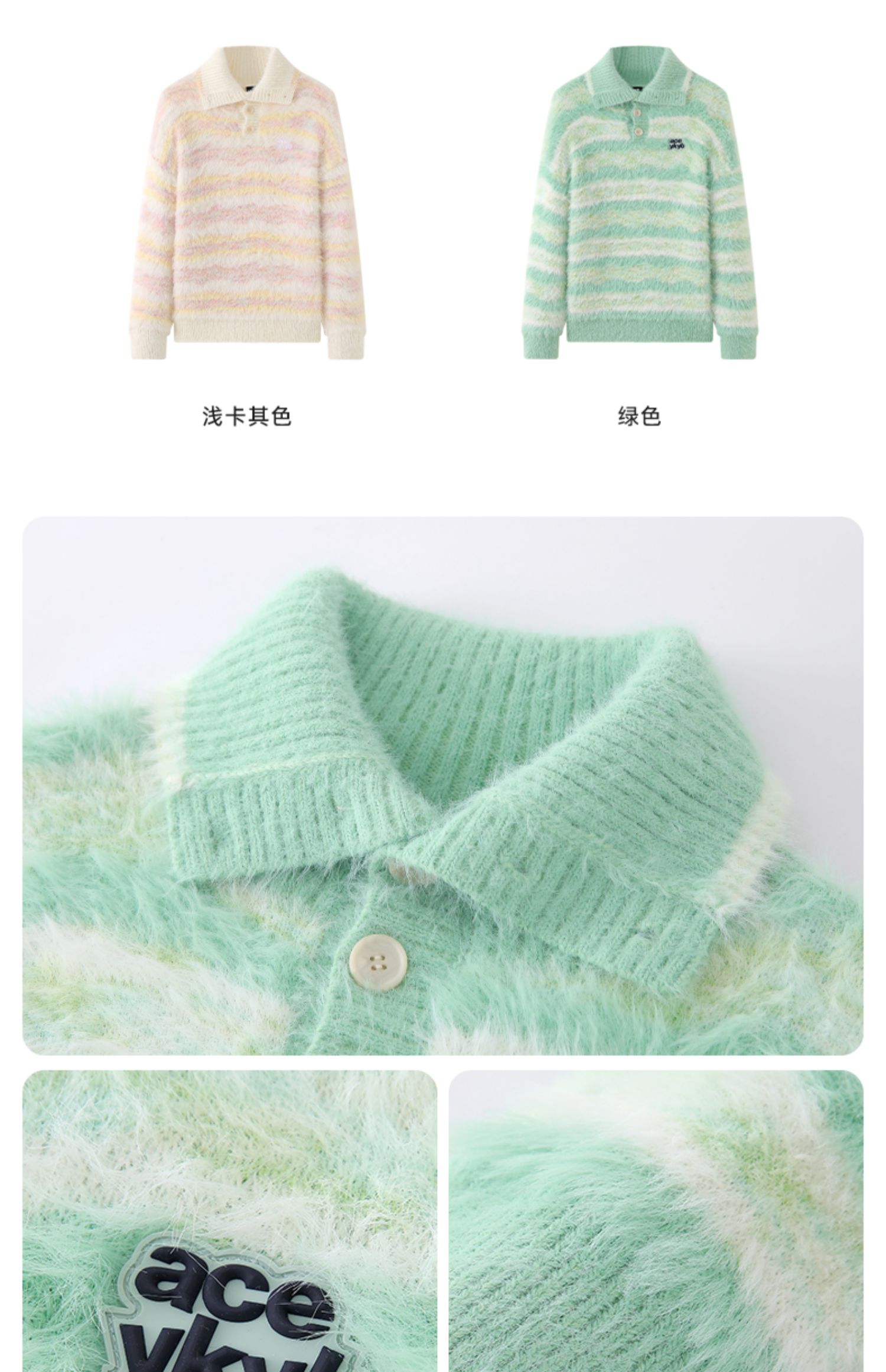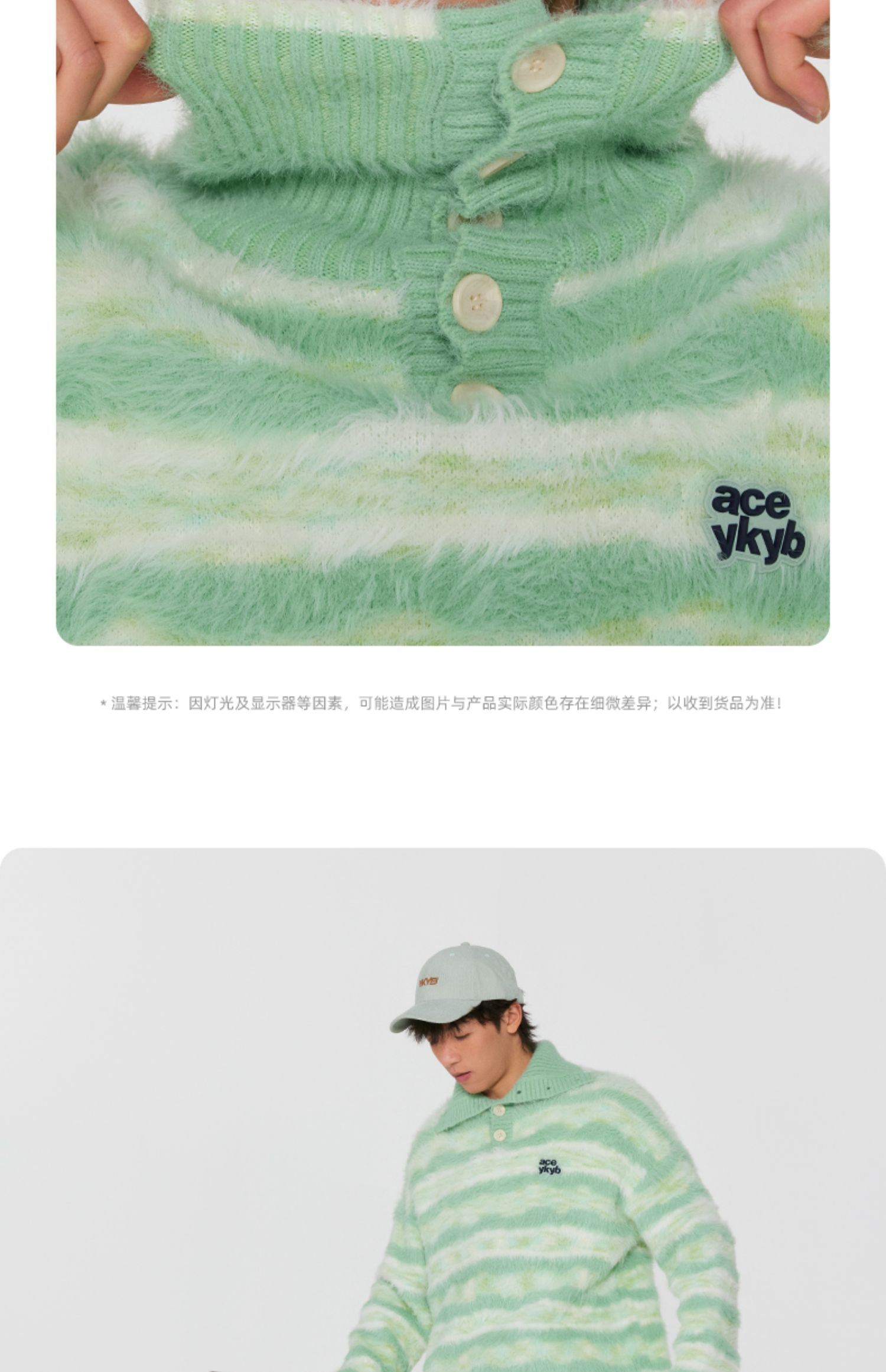 YKYB黄子韬新款2025宽松毛衣保暖多巴胺上衣休闲polo领条纹针织衫