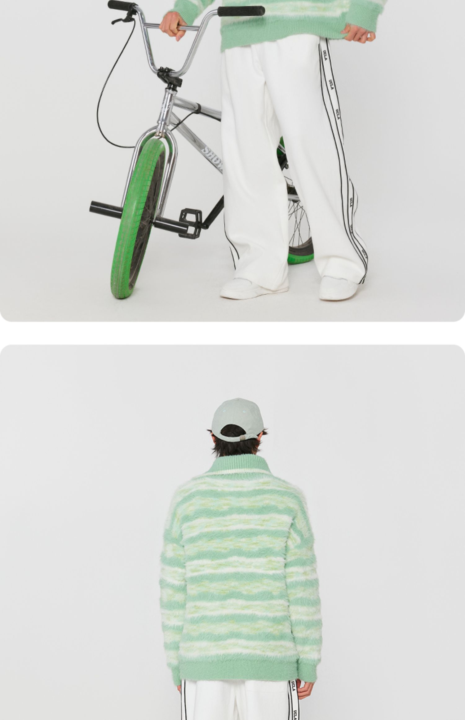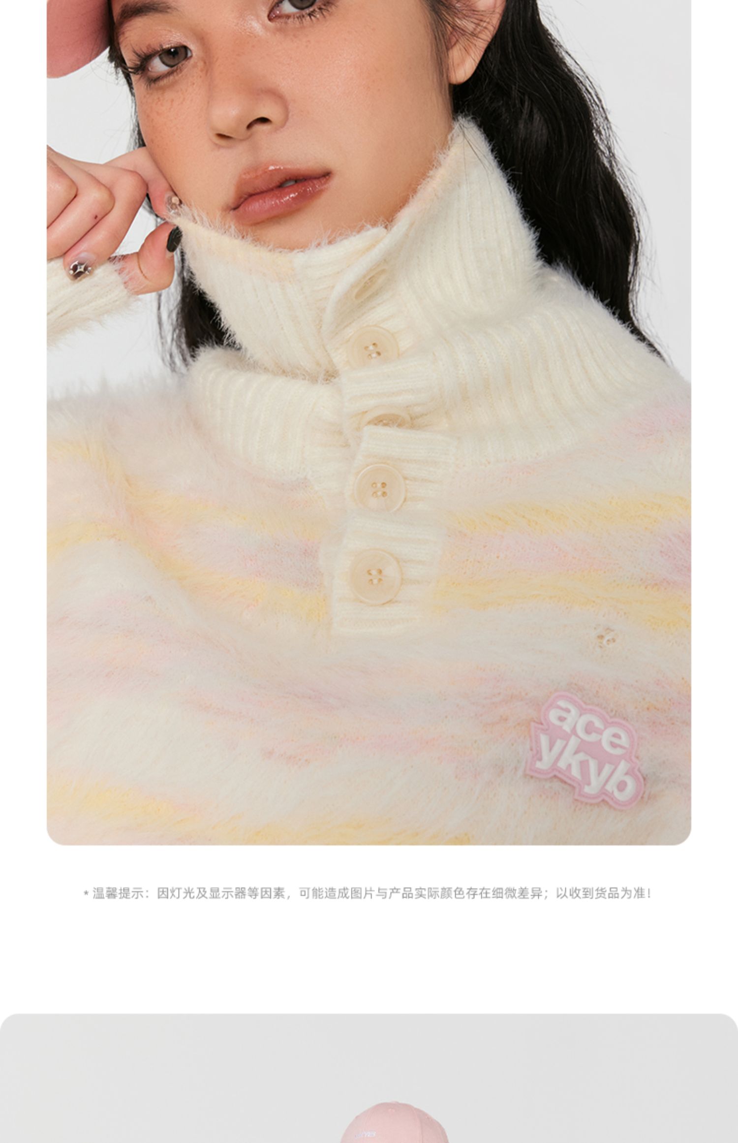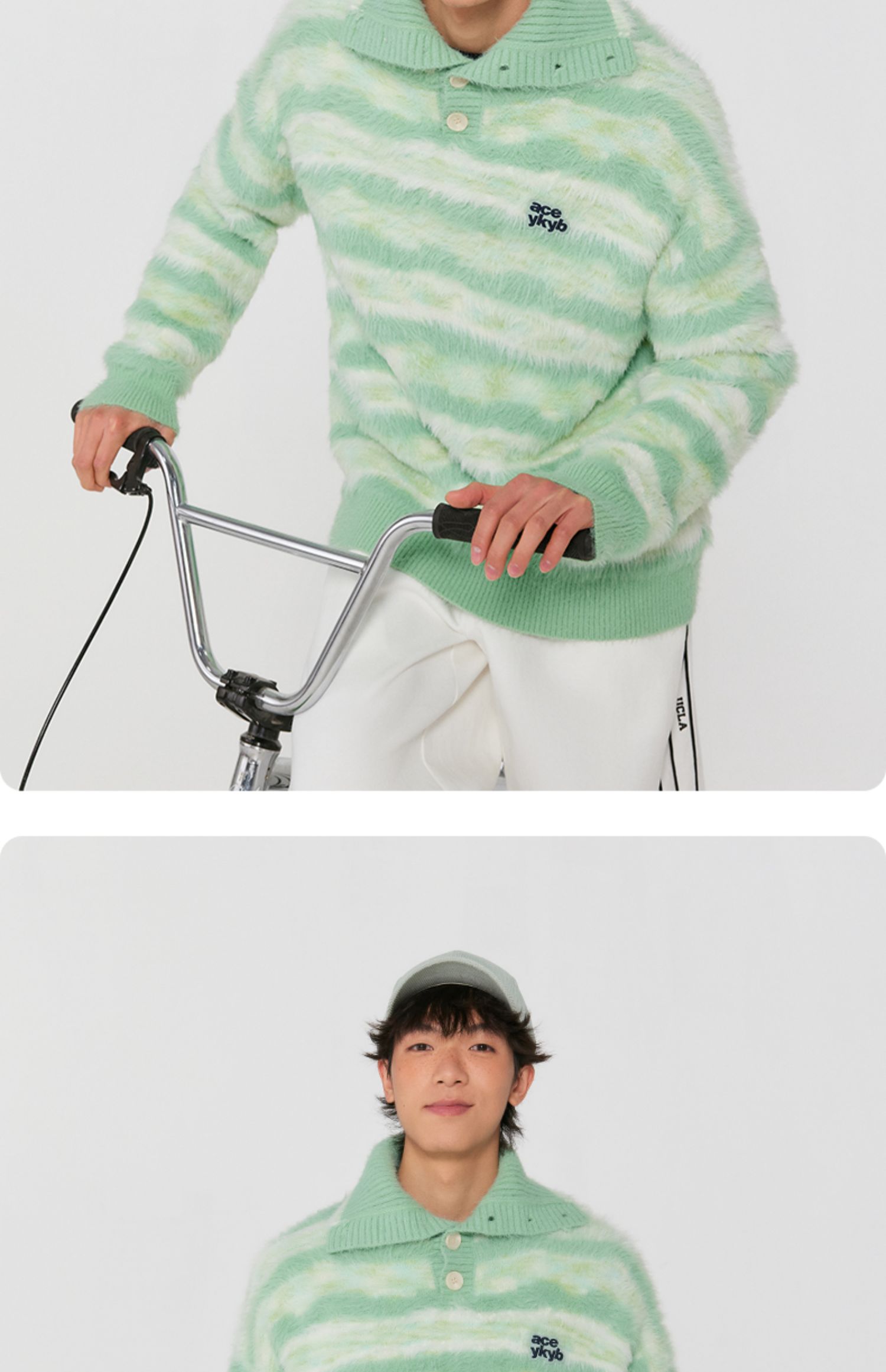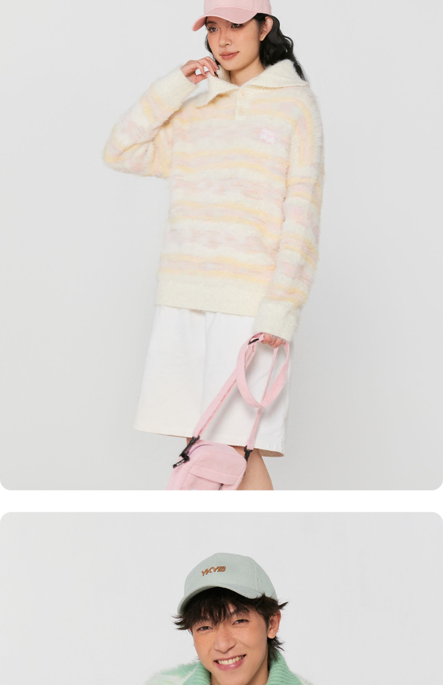 YKYB黄子韬新款2025宽松毛衣保暖多巴胺上衣休闲polo领条纹针织衫