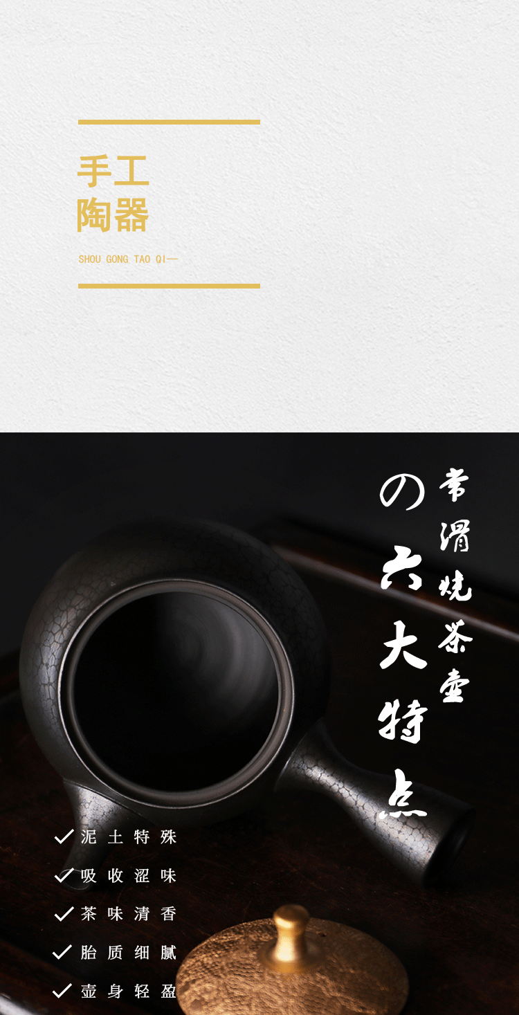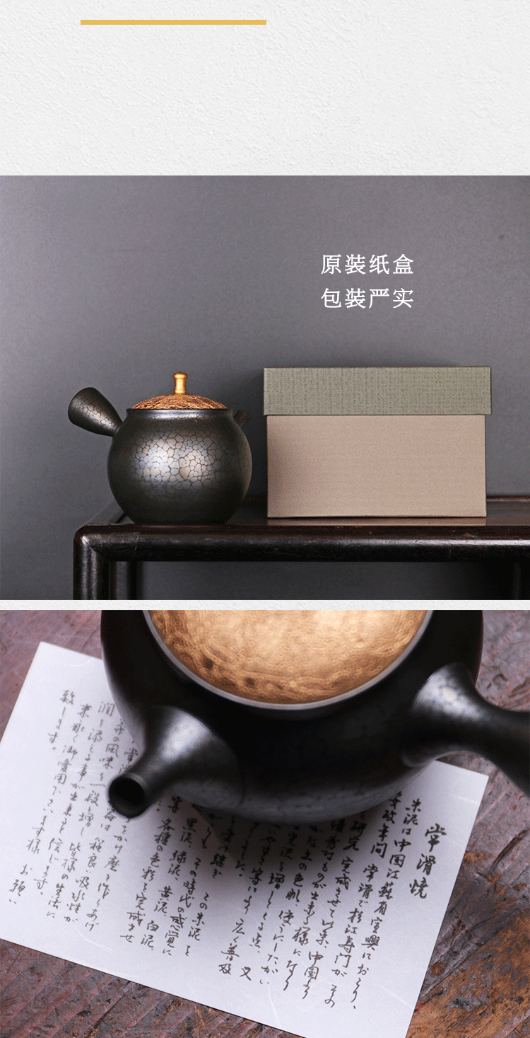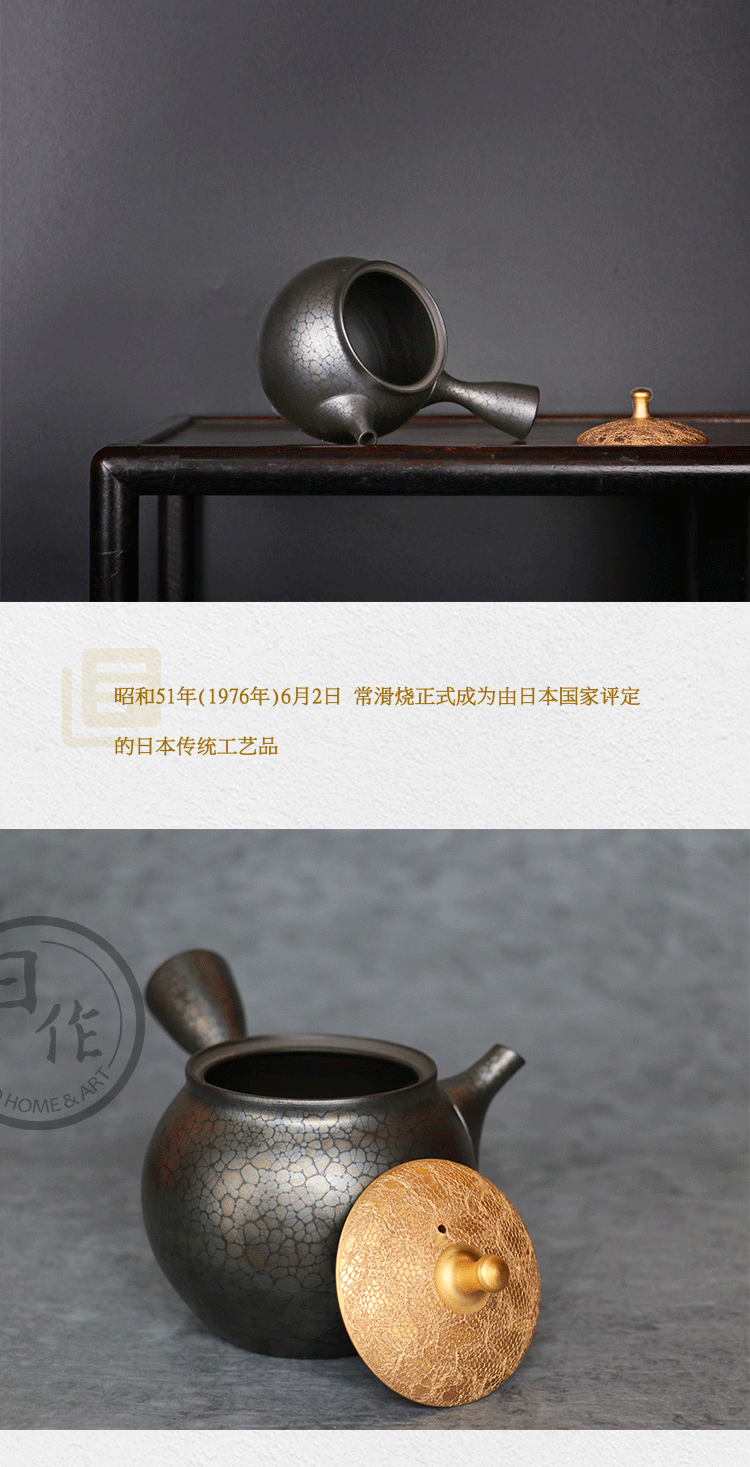 日本进口常滑烧昭龙造梅原昭二作侧把急须茶壶 金盖天目泡茶壶