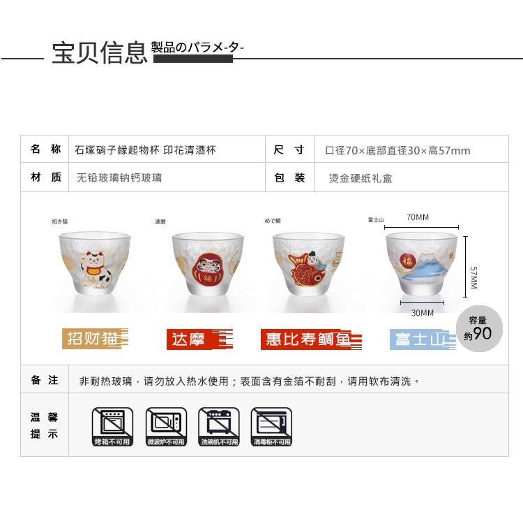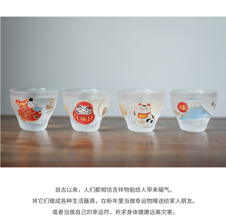 日本进口石塚硝子十二生肖烧酒杯玻璃水杯清酒杯津轻手工杯
