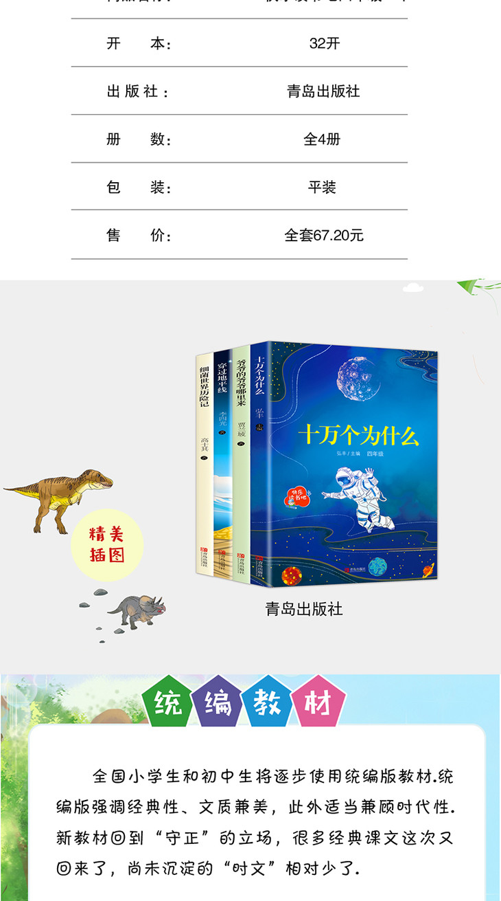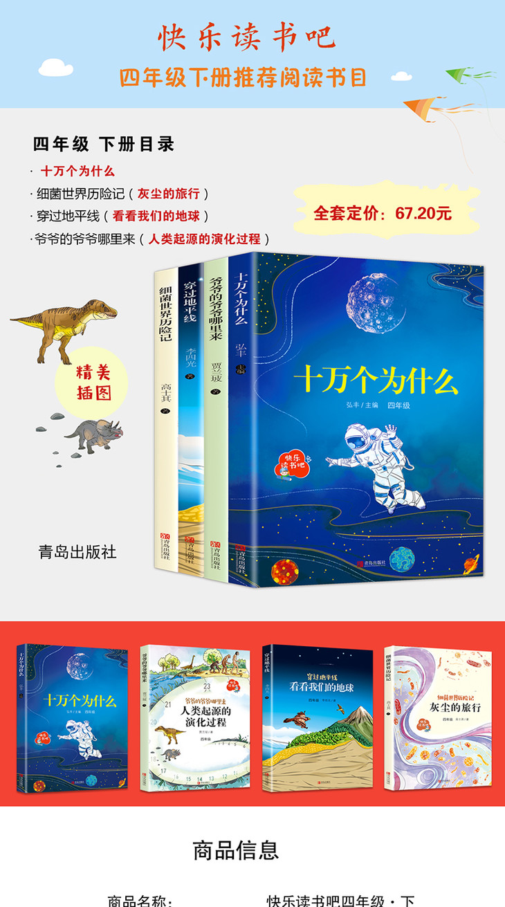 B正版快乐读书吧四年级下课外书阅读全4册xj世界历险记 十万个为什么穿越地平线 xj世界历险记爷爷从哪里来小学生课外阅读书籍