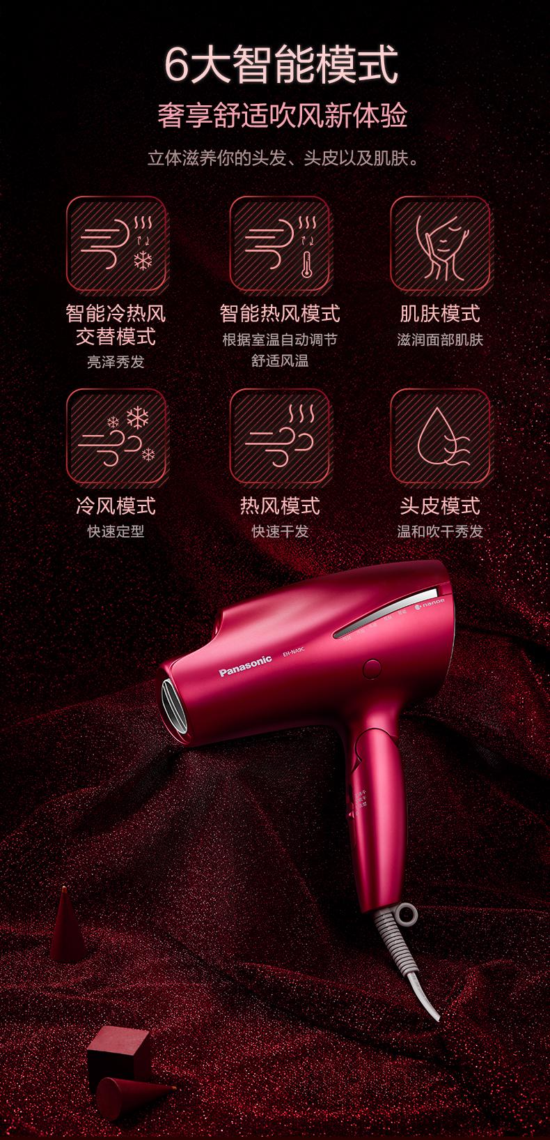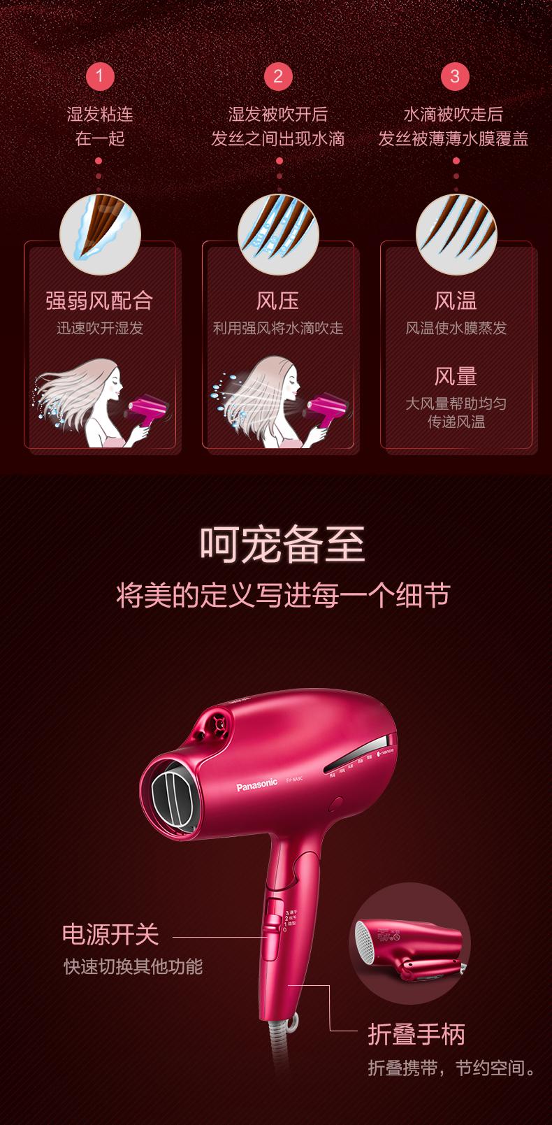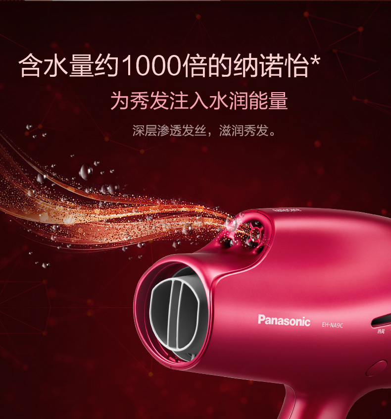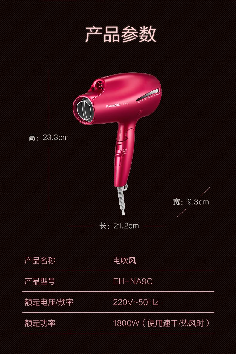 松下吹风机NA9C 家用纳诺怡水负离子大功率风筒[福利品]