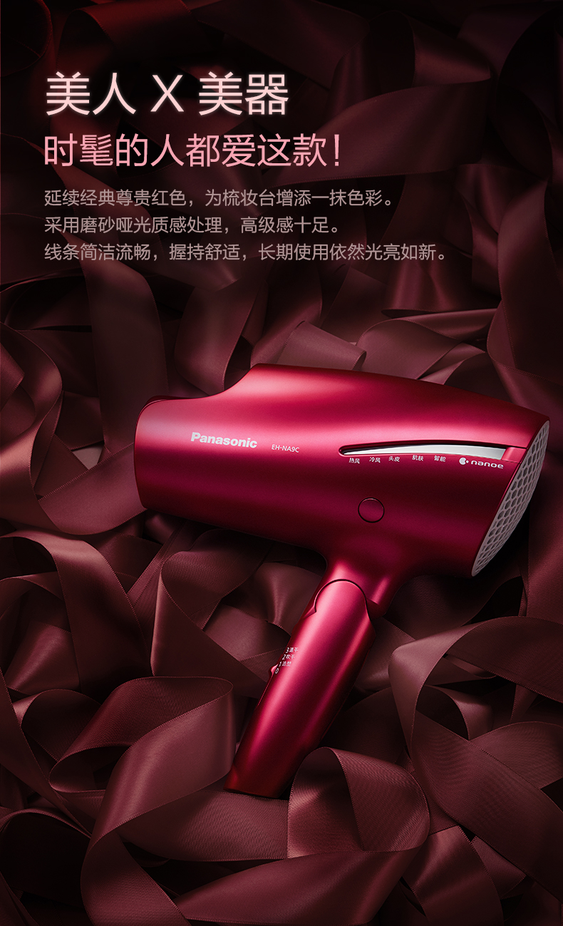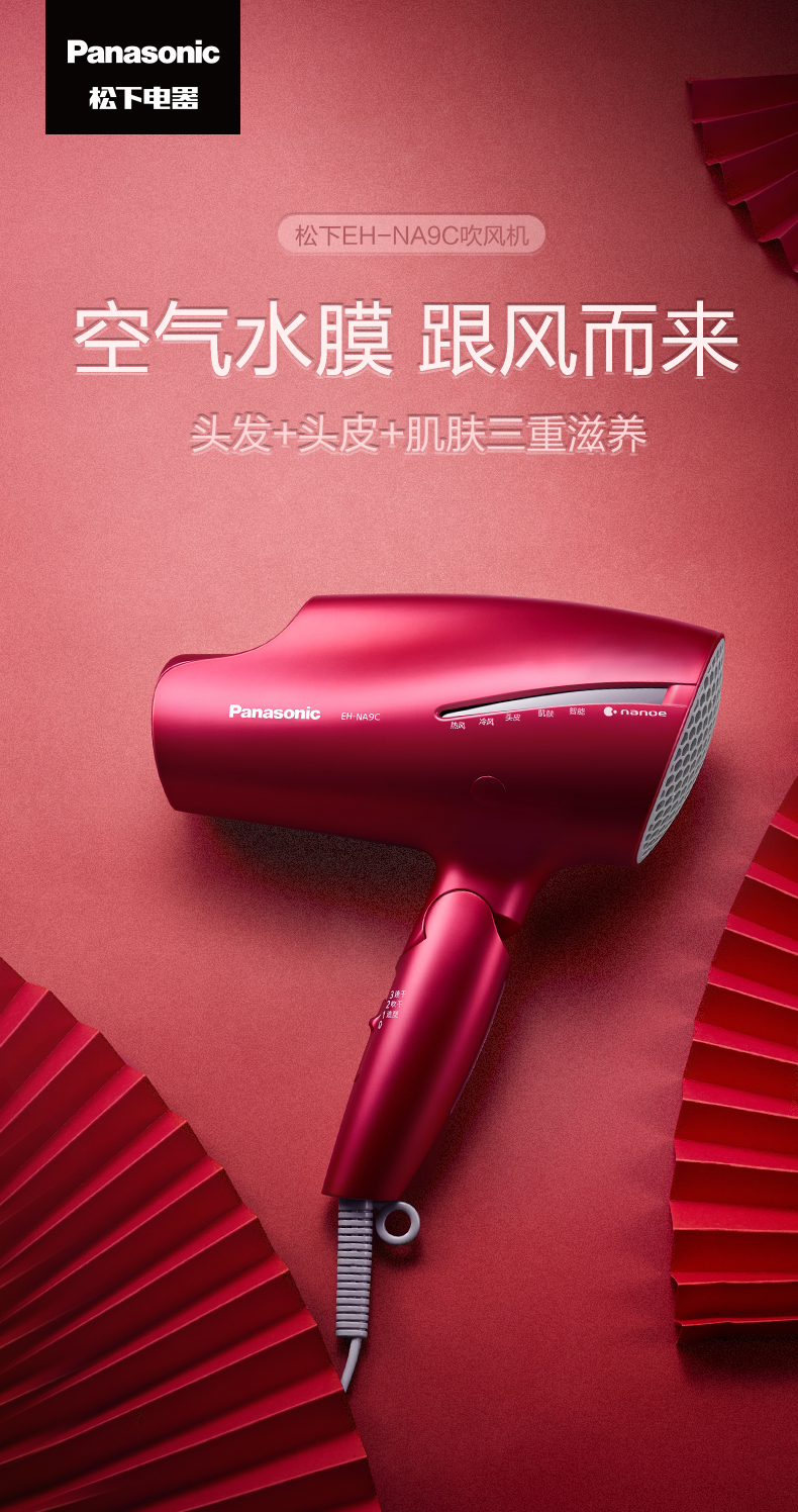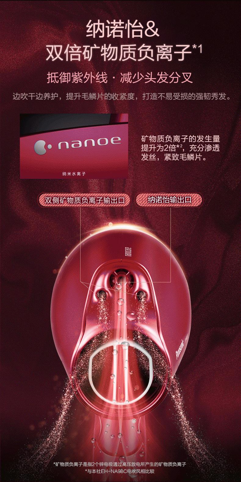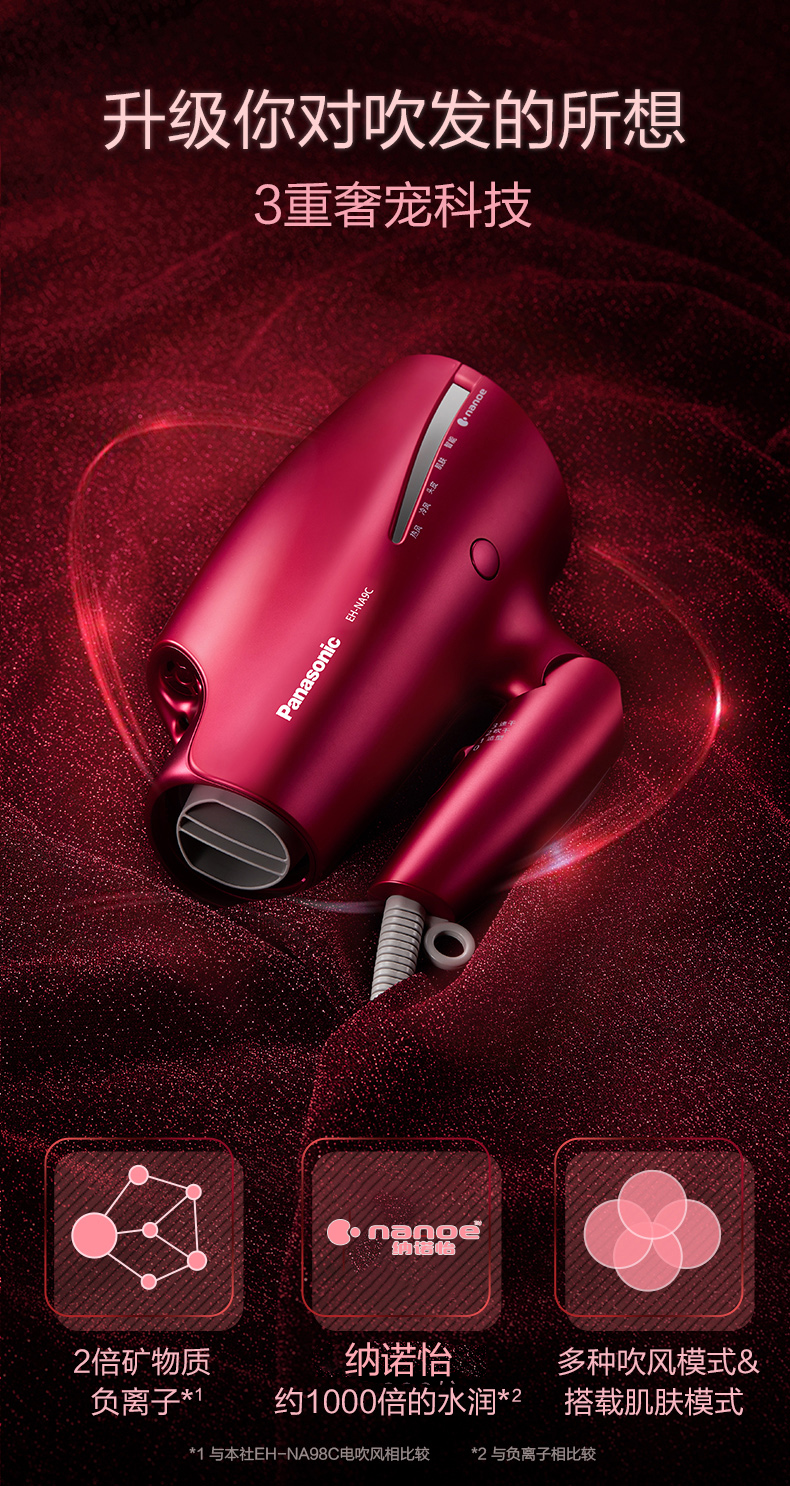 松下吹风机NA9C 家用纳诺怡水负离子大功率风筒[福利品]