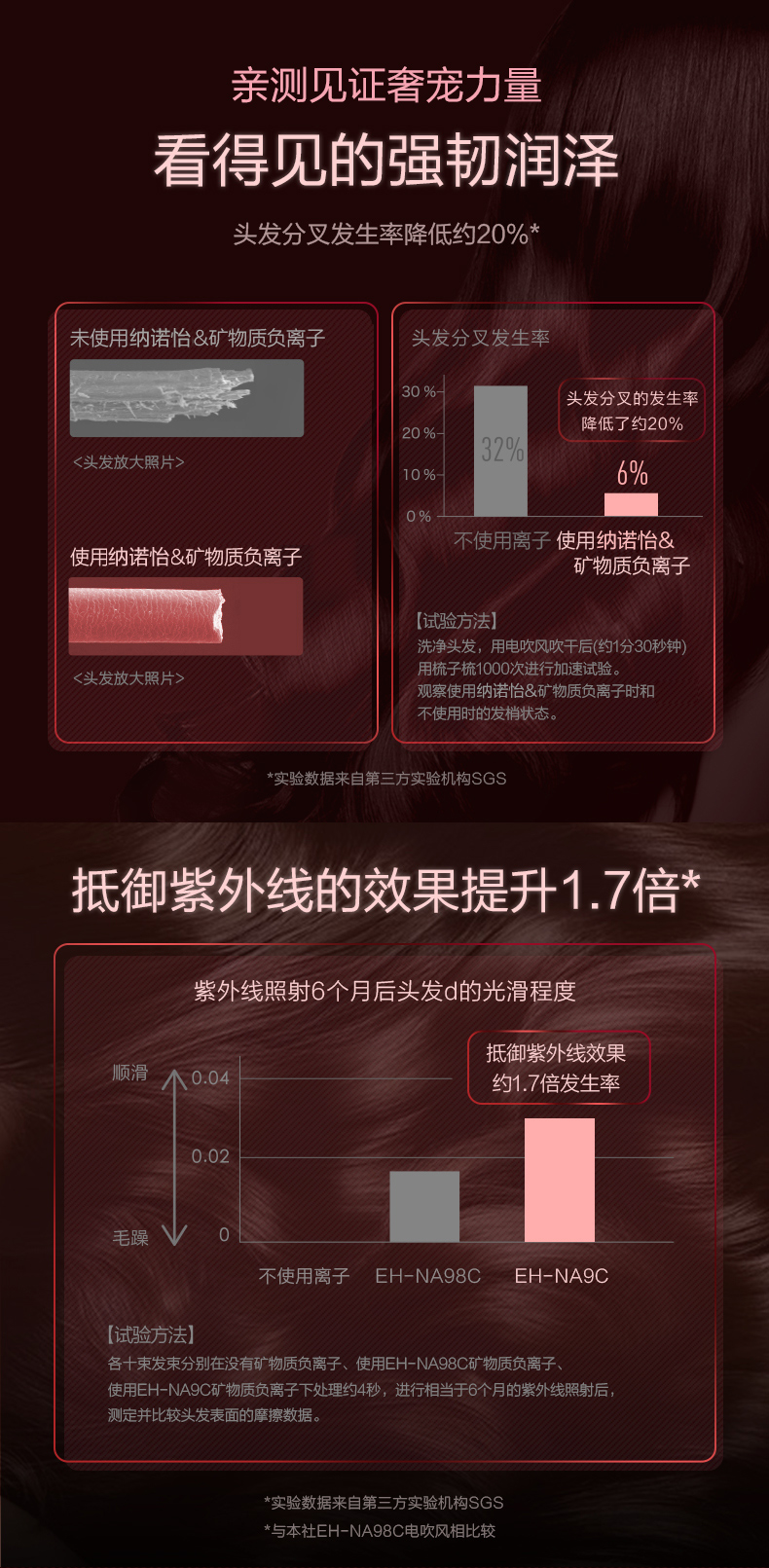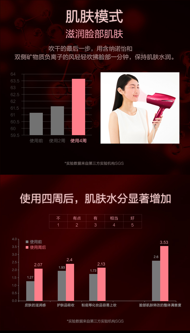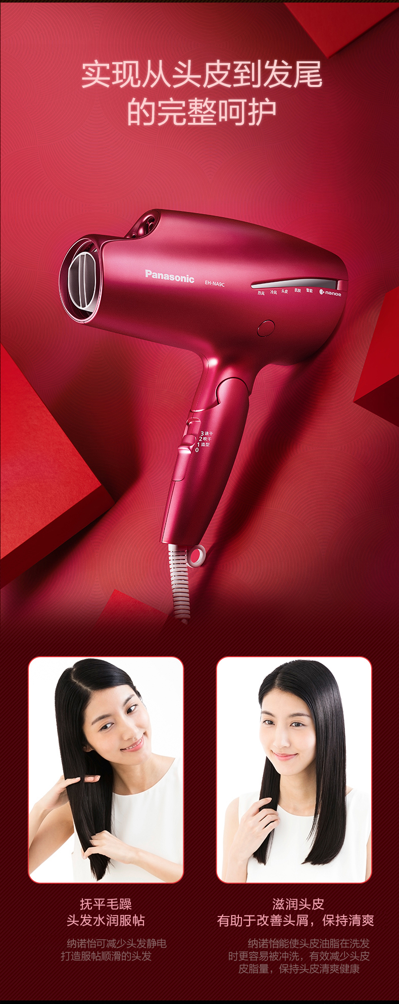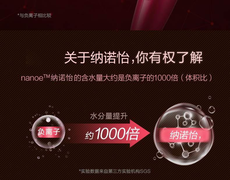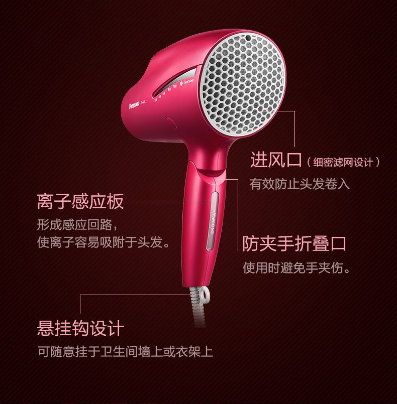 松下吹风机NA9C 家用纳诺怡水负离子大功率风筒[福利品]