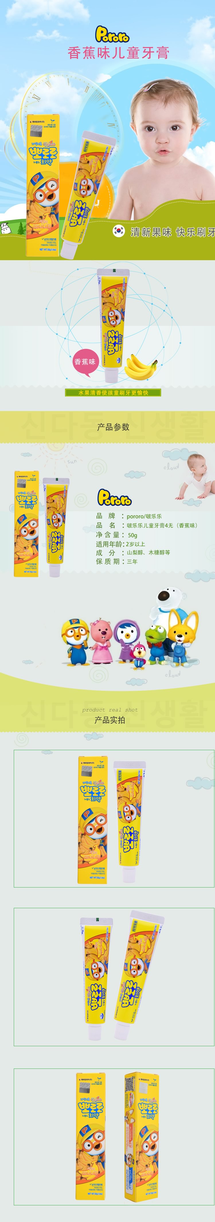 Pororo 啵乐乐 儿童啫喱牙膏80G*2支 10无 香蕉味 2岁以上 韩国