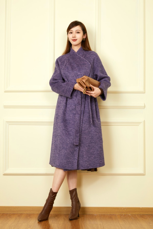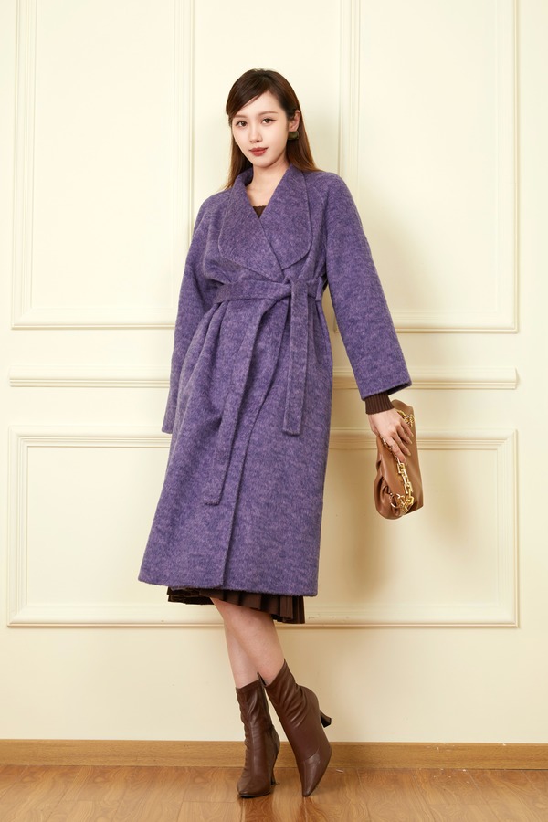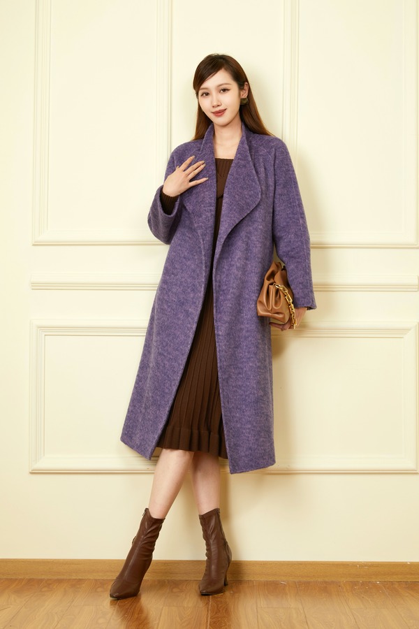 ELLA JADE 高端时髦款紫色长款羊毛大衣 19362