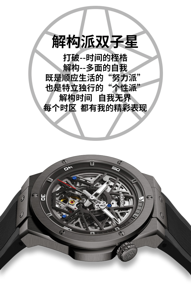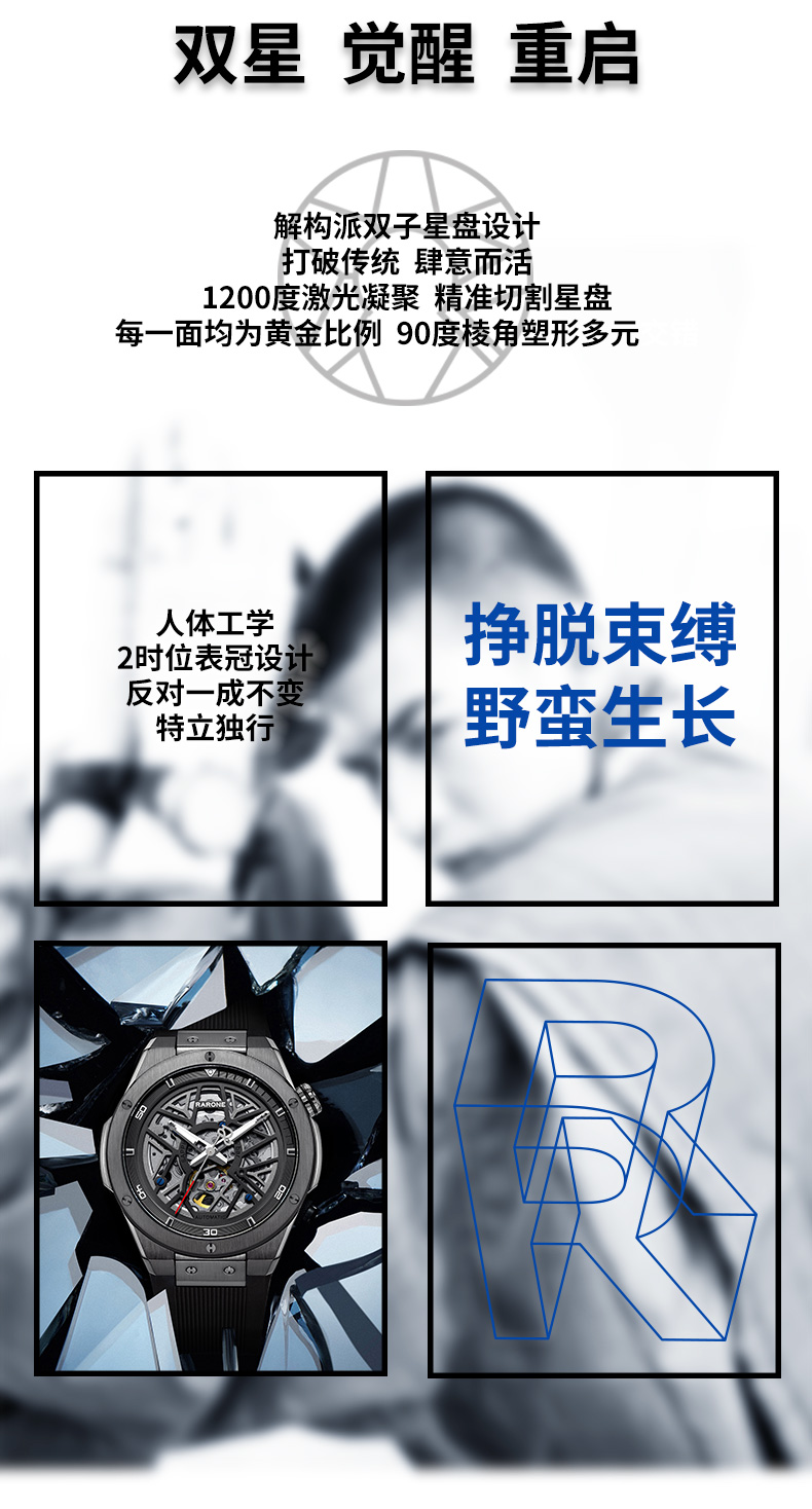 RARONE雷诺表始终秉持创新设计与精品战略。旨在帮助人们精确感悟时间,以一种无畏、坚韧的精英态度,激励每个人在探索世界的过程中,御时而行。