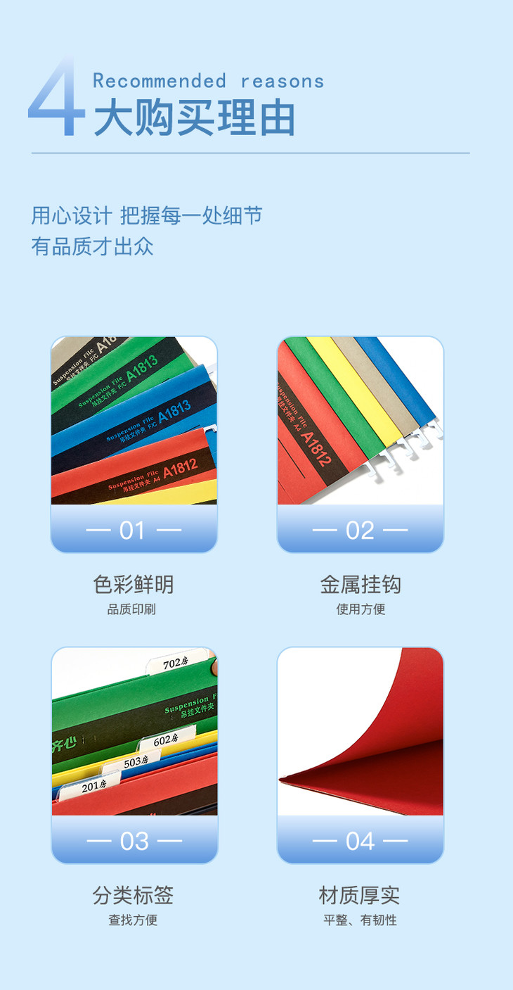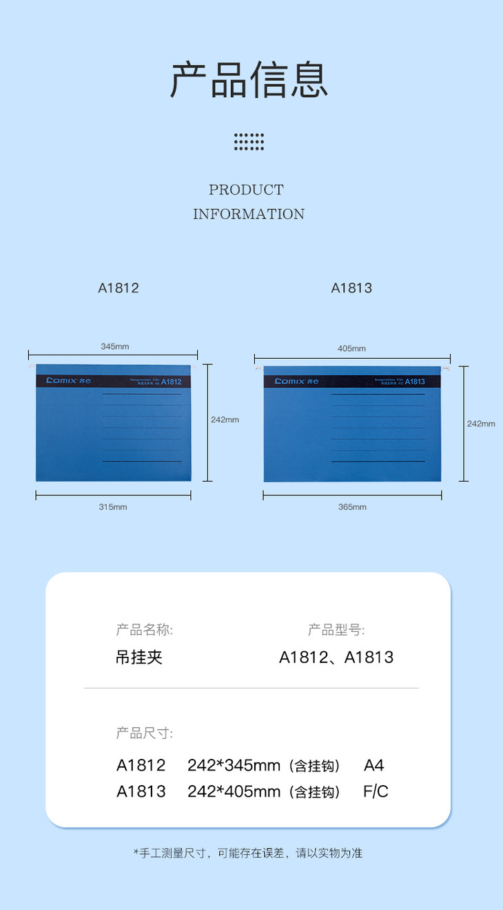 齐心吊挂夹A1812 A4 纸质