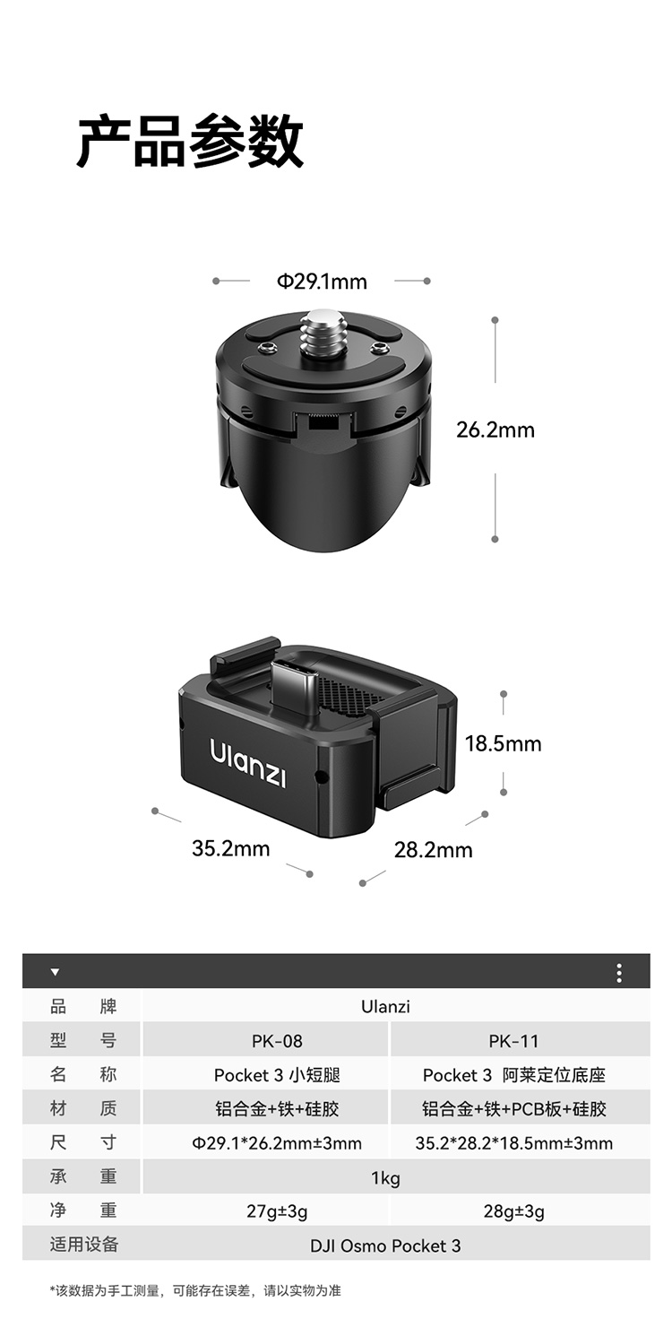 Ulanzi PK10优篮子适用dji大疆pocket3配件合集PK3定位底座小短腿支架