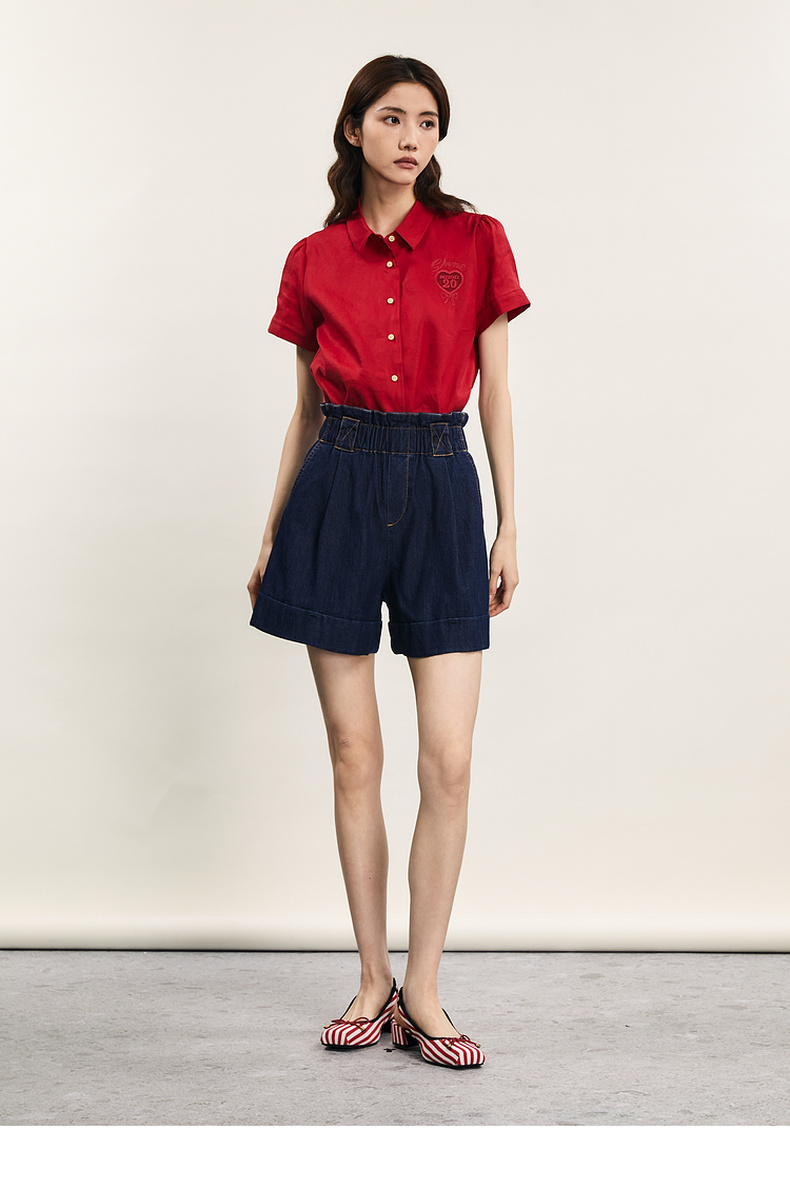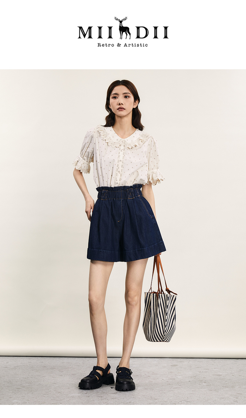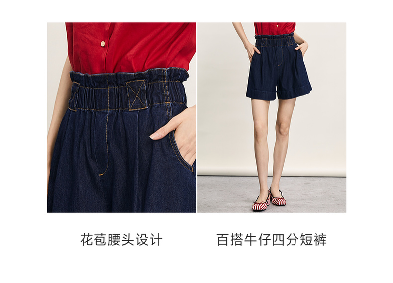 谜底牛仔短裤女2024夏季新品复古文艺风花苞式高腰A型裤242MK0713