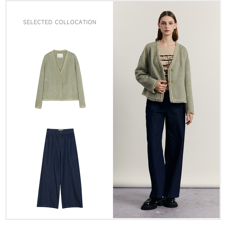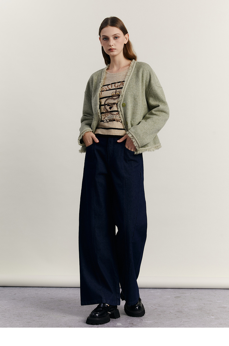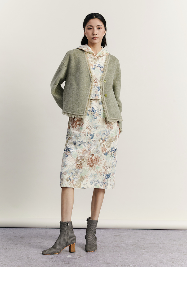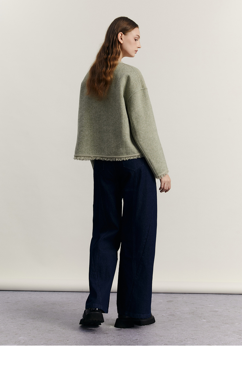 谜底短款毛呢外套女2023冬款复古文艺毛边宽松呢子大衣234MD1464