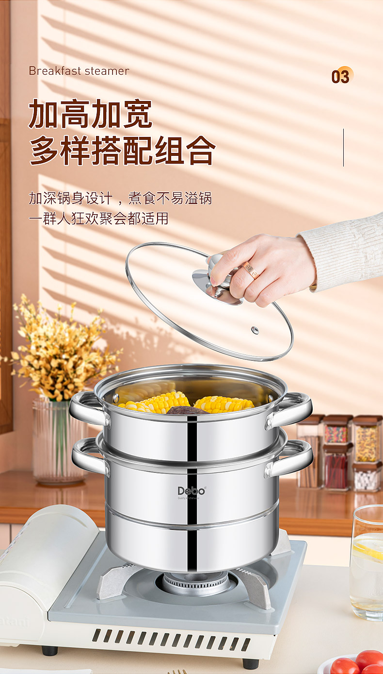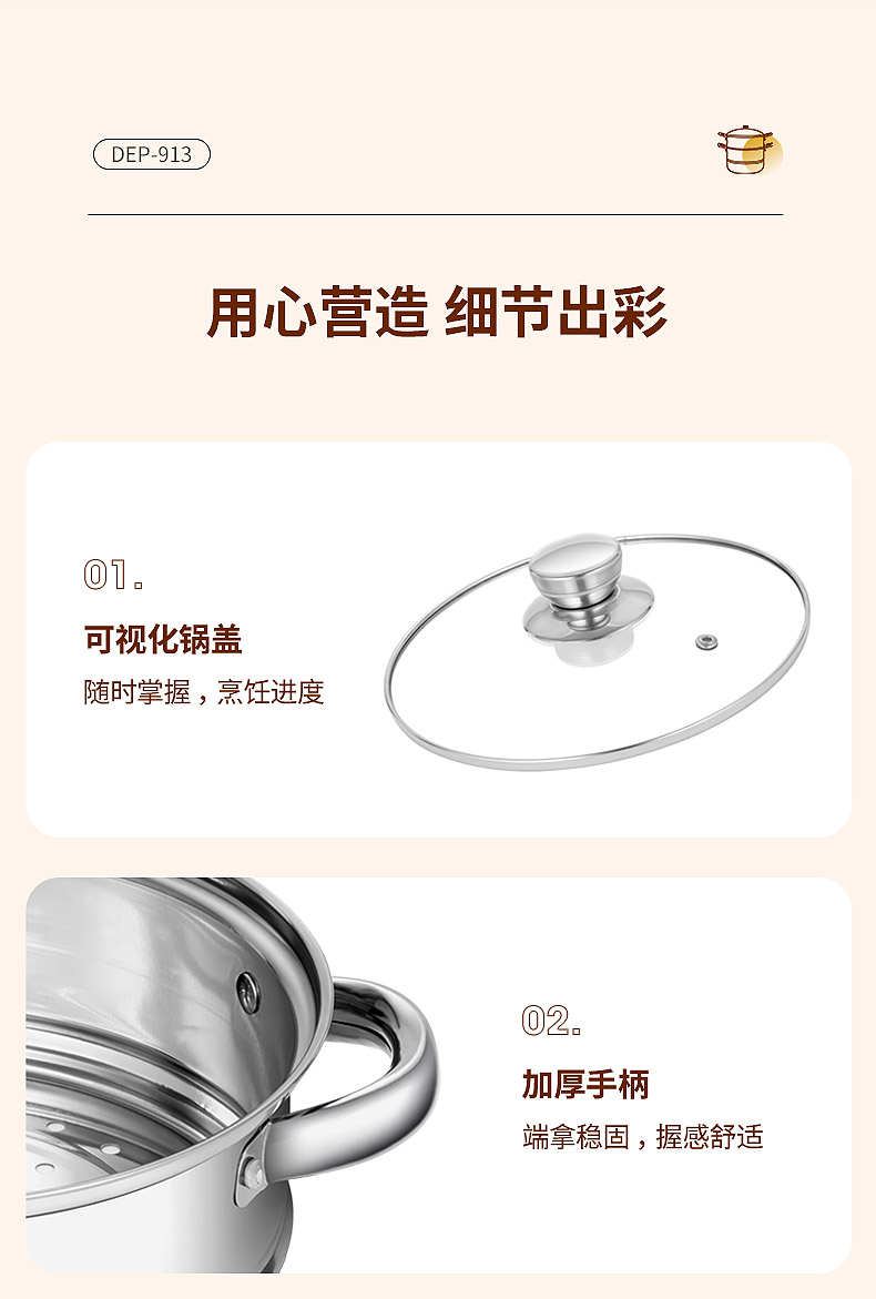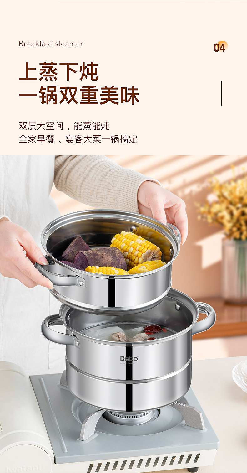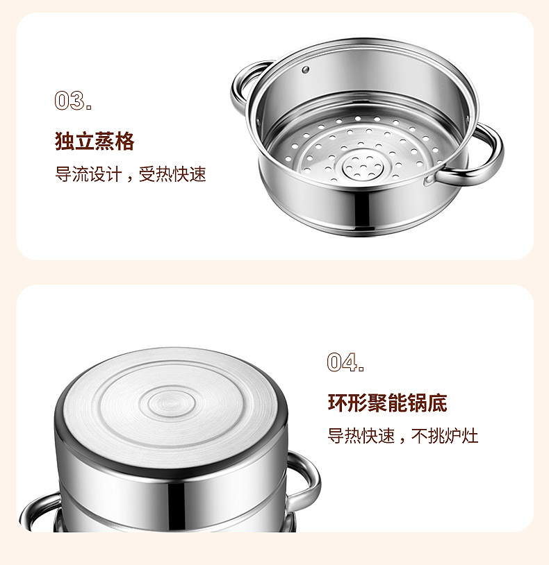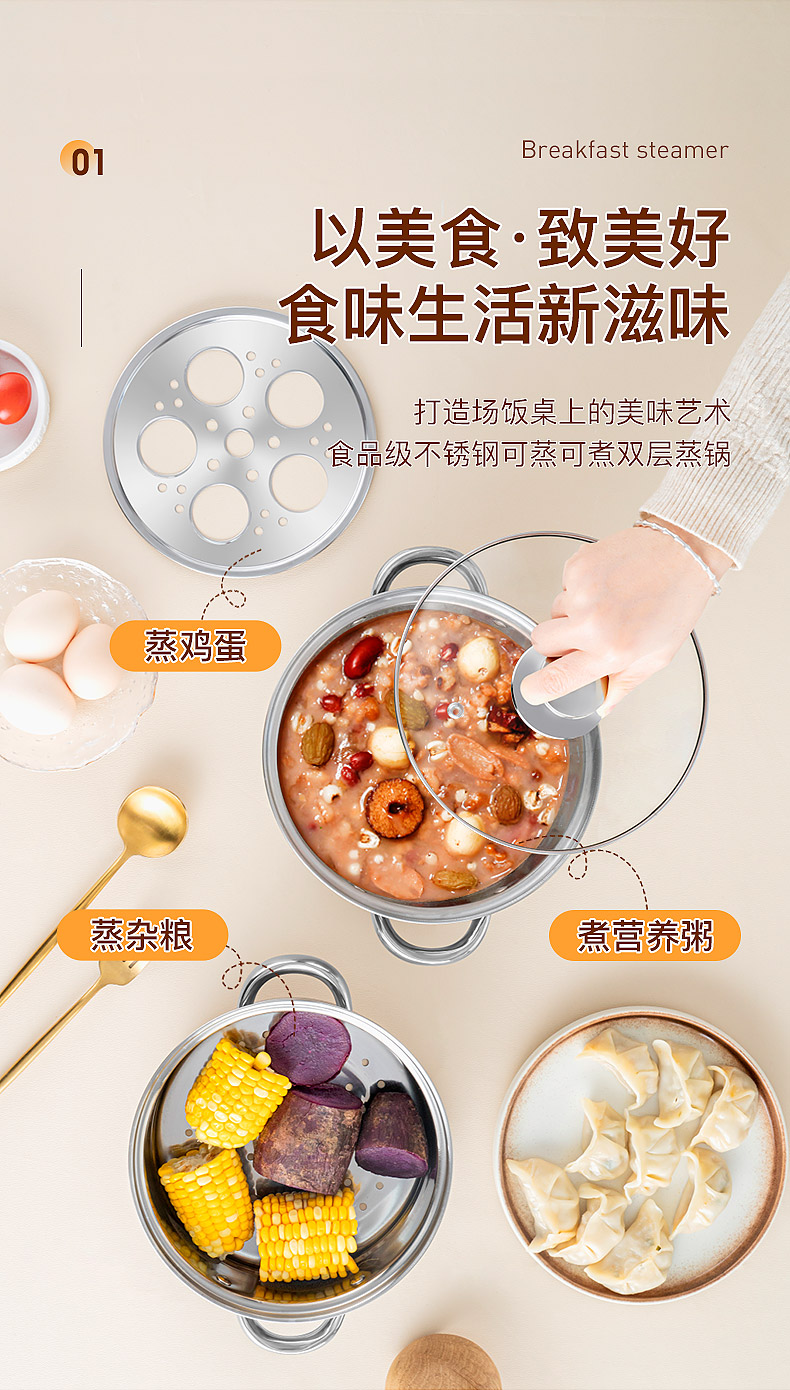 配置:锅身*1、玻璃盖*1、蒸蛋架*1、蒸格*1