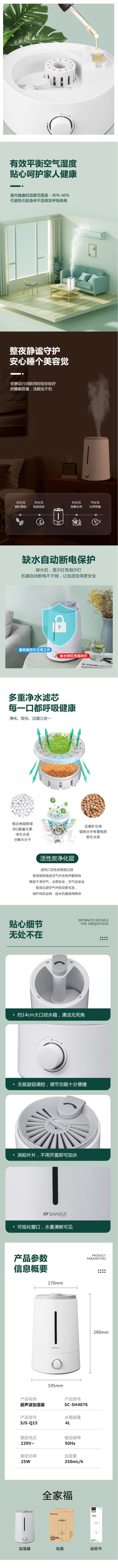山水(SANSUI)家用上加水带过滤加湿器 SJS-Q15