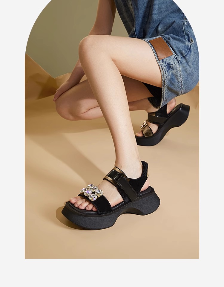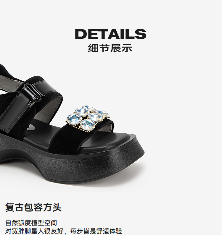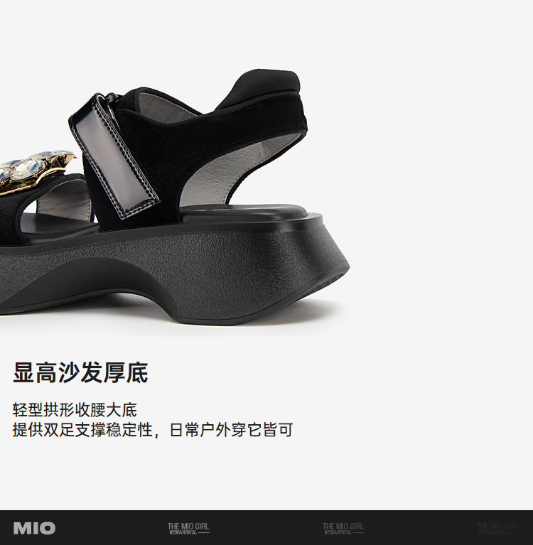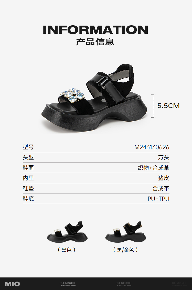 MIO米奥夏季复古方头休闲凉鞋甜酷时髦厚底通勤凉鞋女鞋M243130626