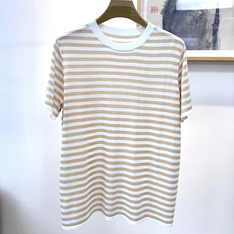火桐hooton 莱赛尔桑蚕丝条纹圆领短袖T恤G039