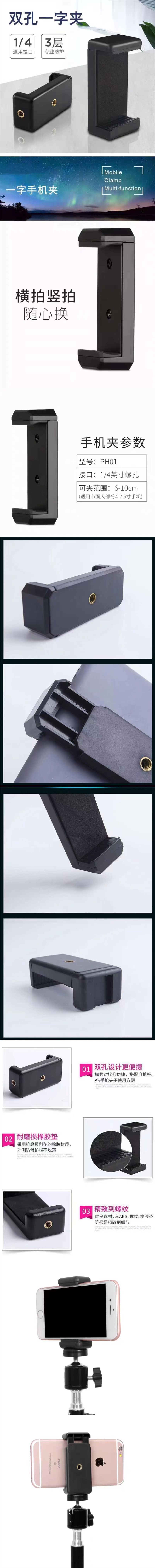 手机夹 E字夹一字夹 1个 直播补光灯双孔机位夹直播三脚架自拍杆固定夹