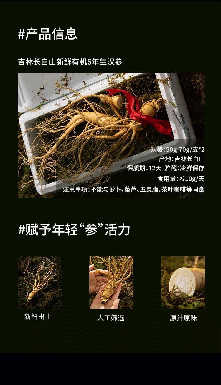 2022鲜参上市 益盛 长白山有机鲜人参礼盒2支装[D类]