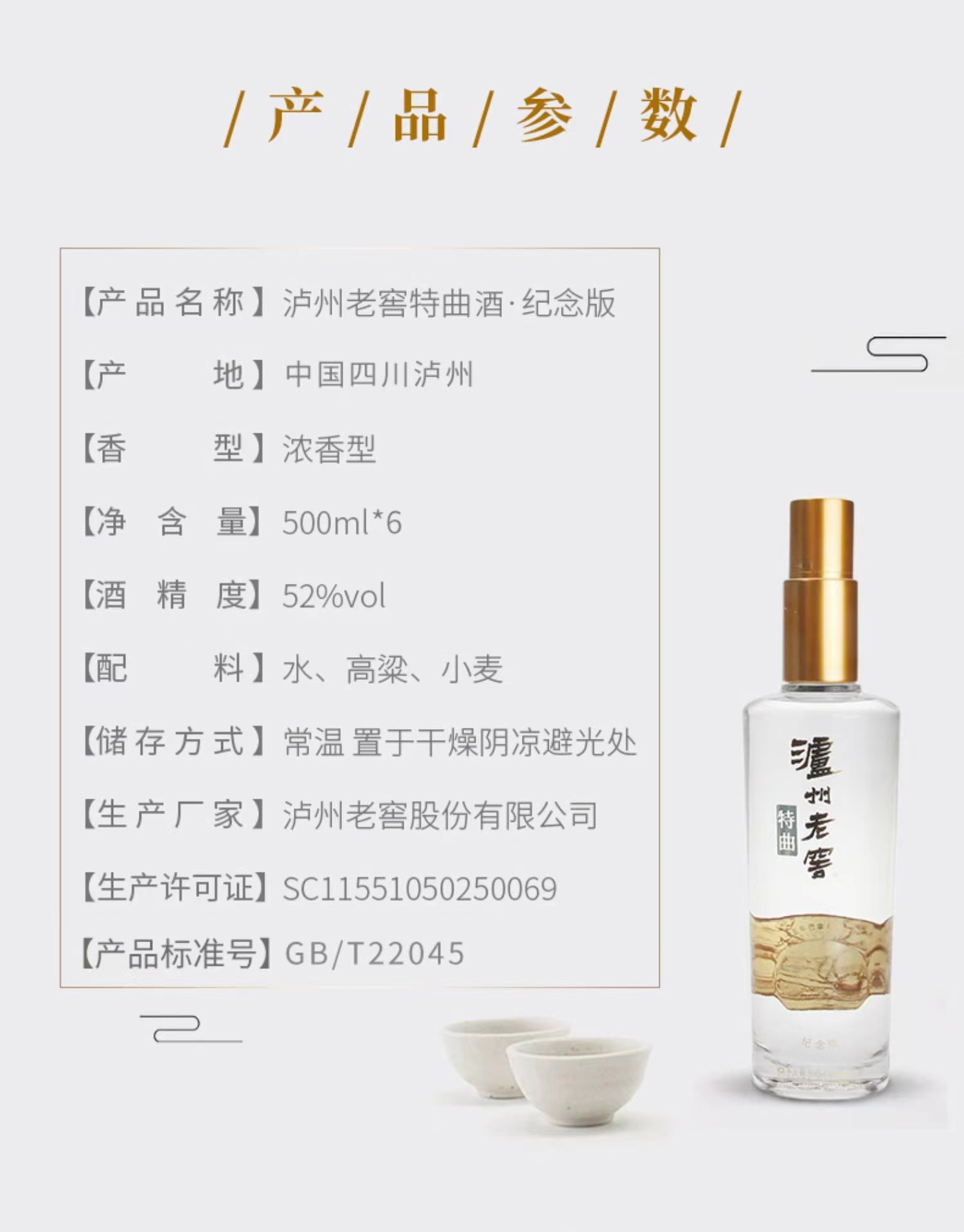 【泸州老窖官方形象店】52度特曲纪念版 500ml*6 浓香型 整箱白酒
