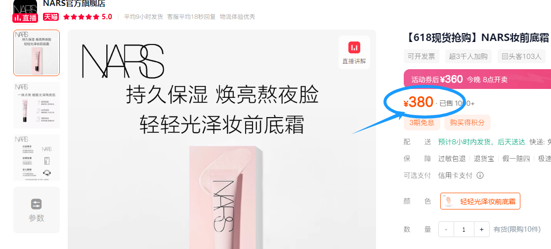 【5.17王炸割肉价】NARS妆前底霜 自然亲肤保湿焕亮底妆轻盈细腻30ML