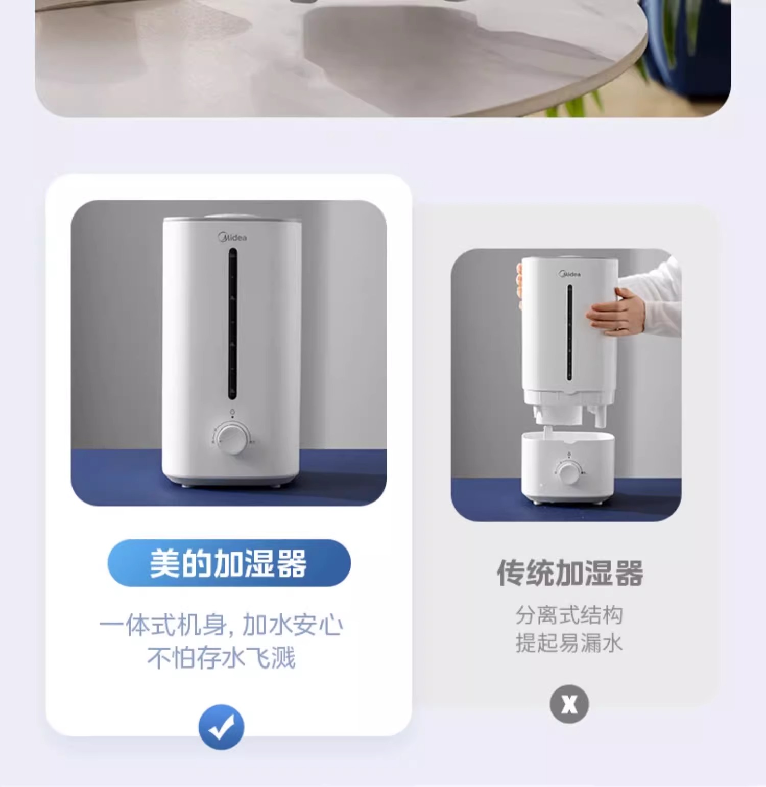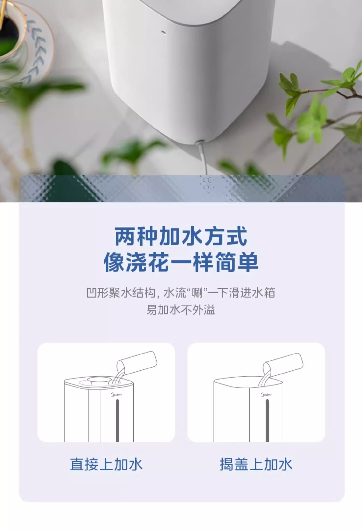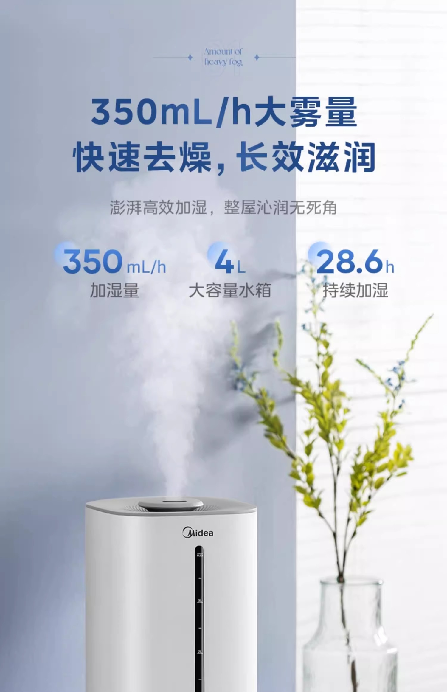 美的加湿器家用轻音卧室办公室喷雾空调孕妇婴儿大容量空气清新机