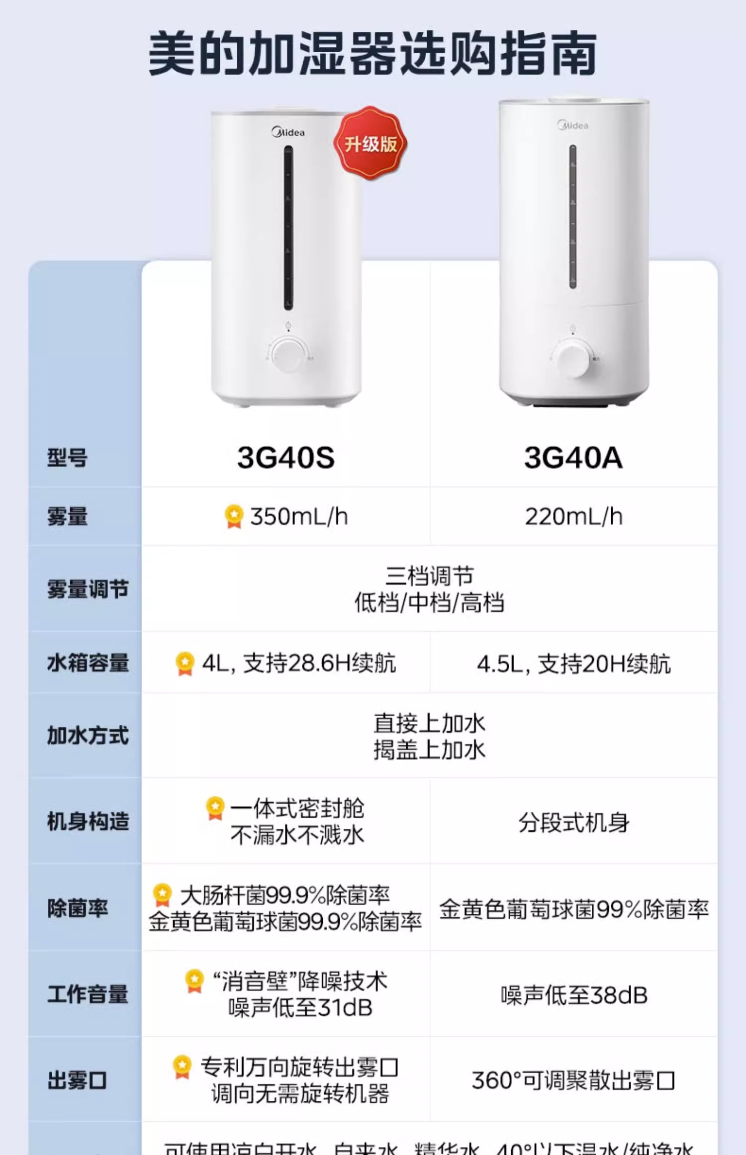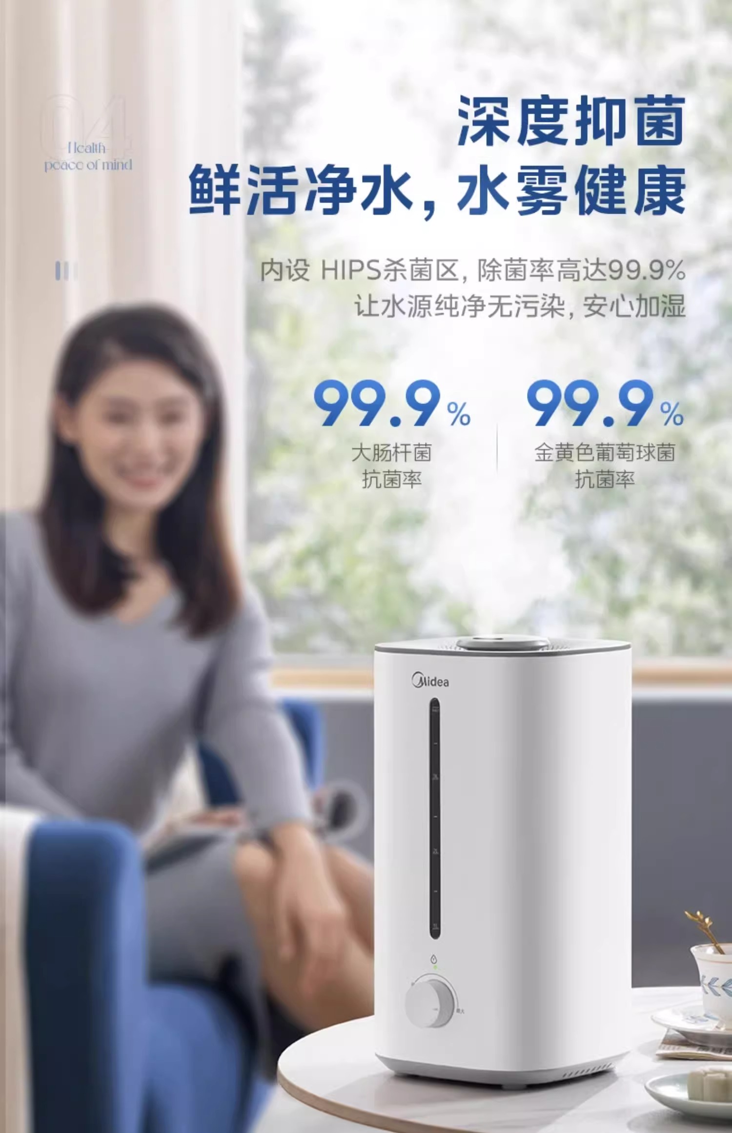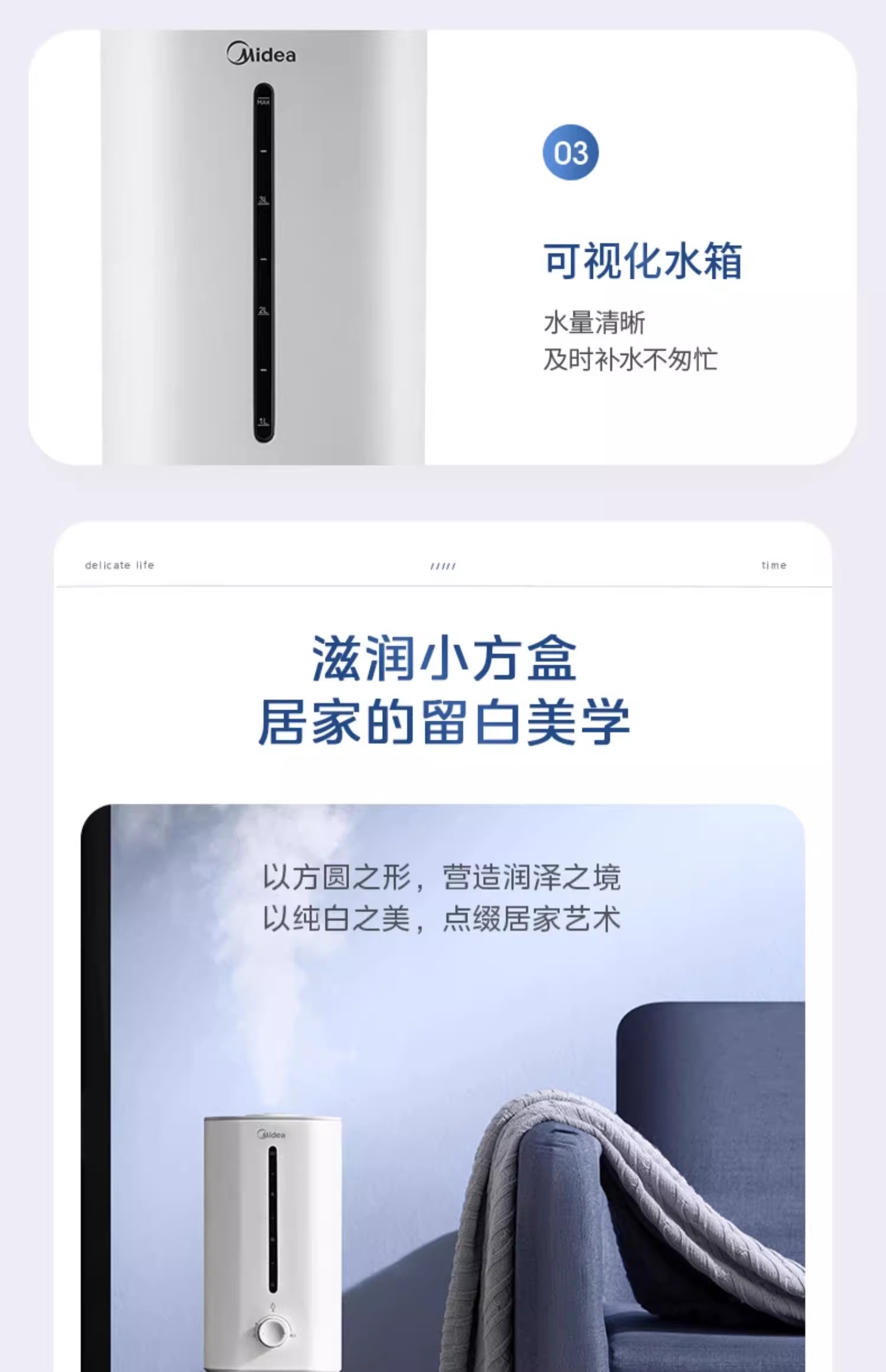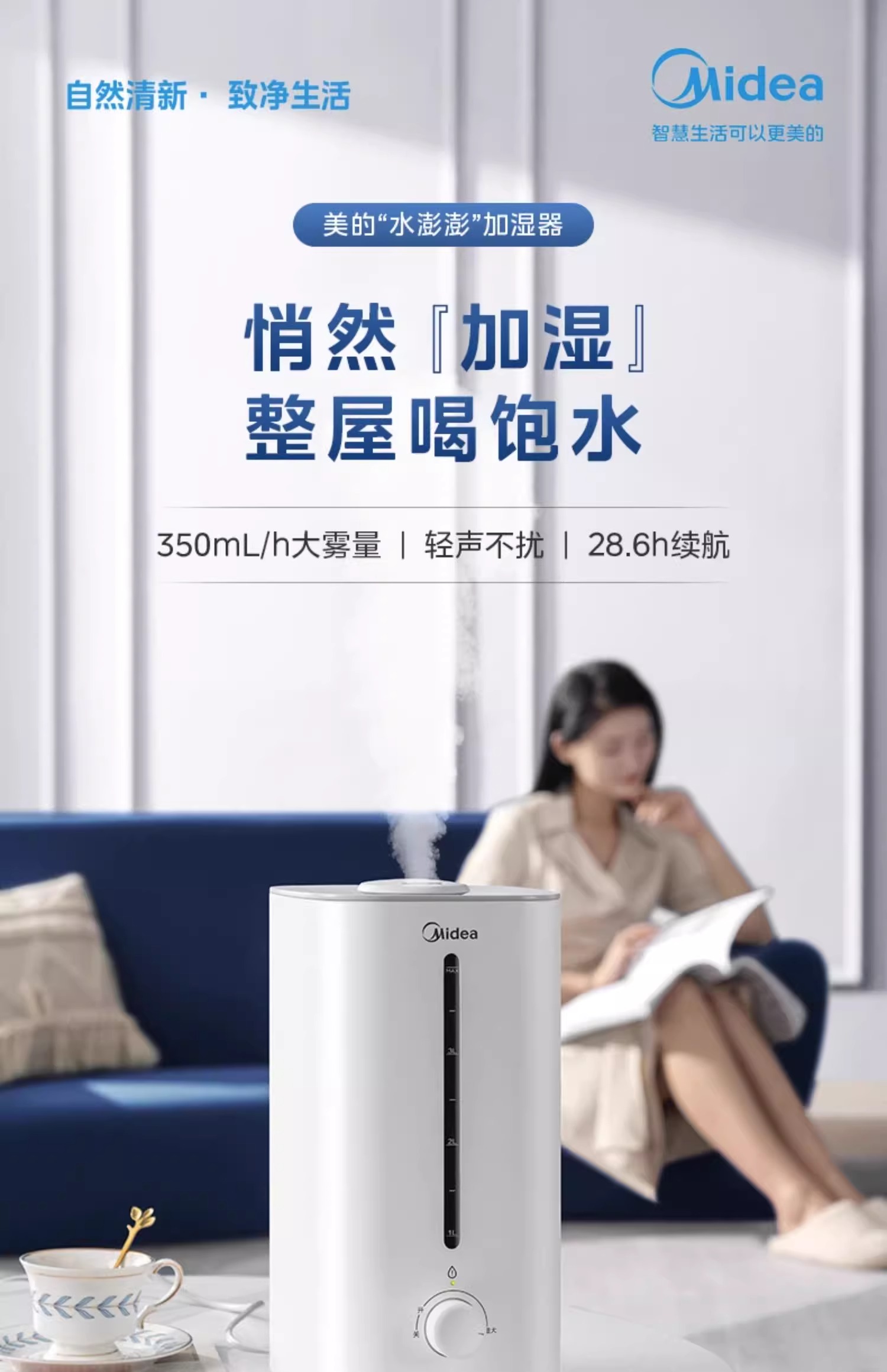 美的加湿器家用轻音卧室办公室喷雾空调孕妇婴儿大容量空气清新机