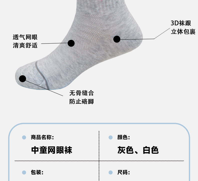【6双6折】中童夏季网面棉袜透气吸汗舒适女童短筒袜男宝【2双装 2513209】
