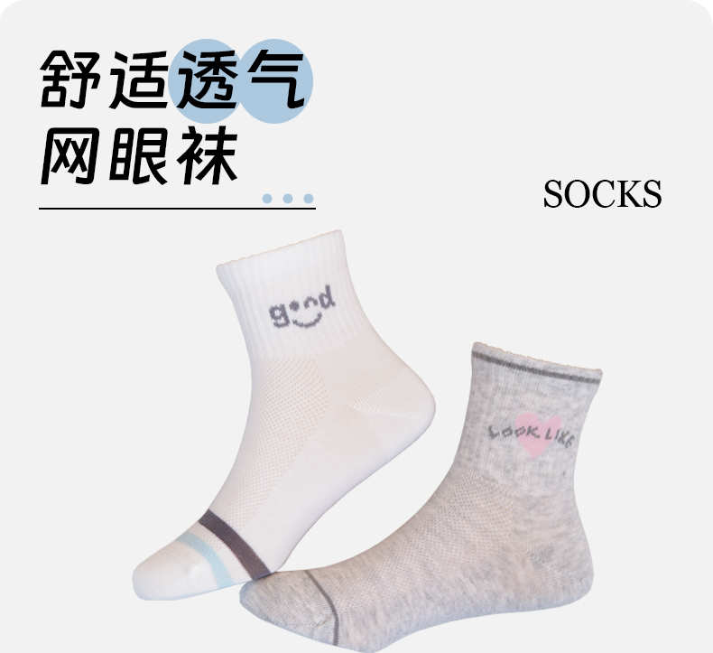 女【2双装 6双6折】丨女士丝袜中短筒袜网面春秋袜子女袜休闲袜【2412202】
