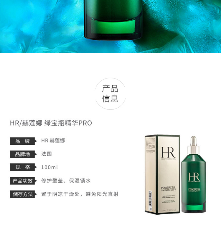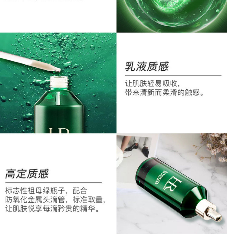 HR绿宝瓶,无数人的心头挚爱精华!弹润质地但流动性很好,上脸吸收非常快吸收,清爽无负担。作为一瓶抗初老精华,