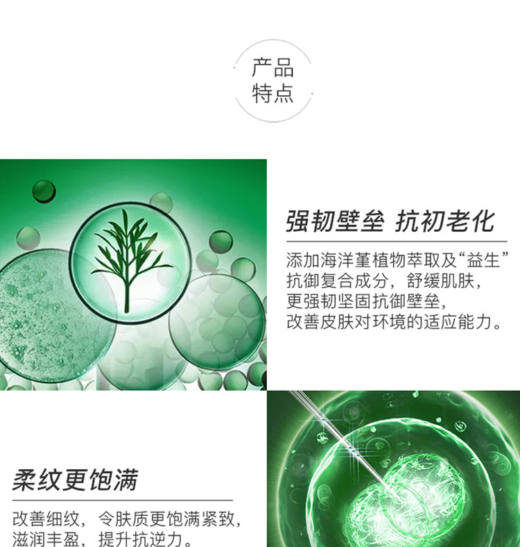 绿宝瓶也很优秀了,精选海洋堇和海东青成分,提升肌肤防御力,同时让肌肤细腻柔软,焕发光泽!