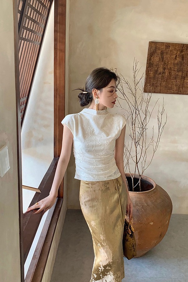Le Malene 白色植物提花针织上衣 20280