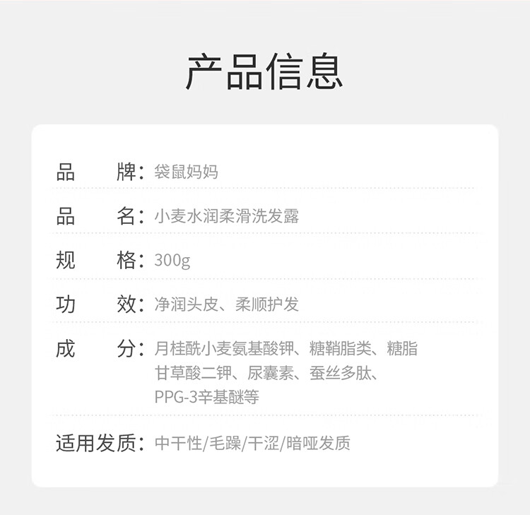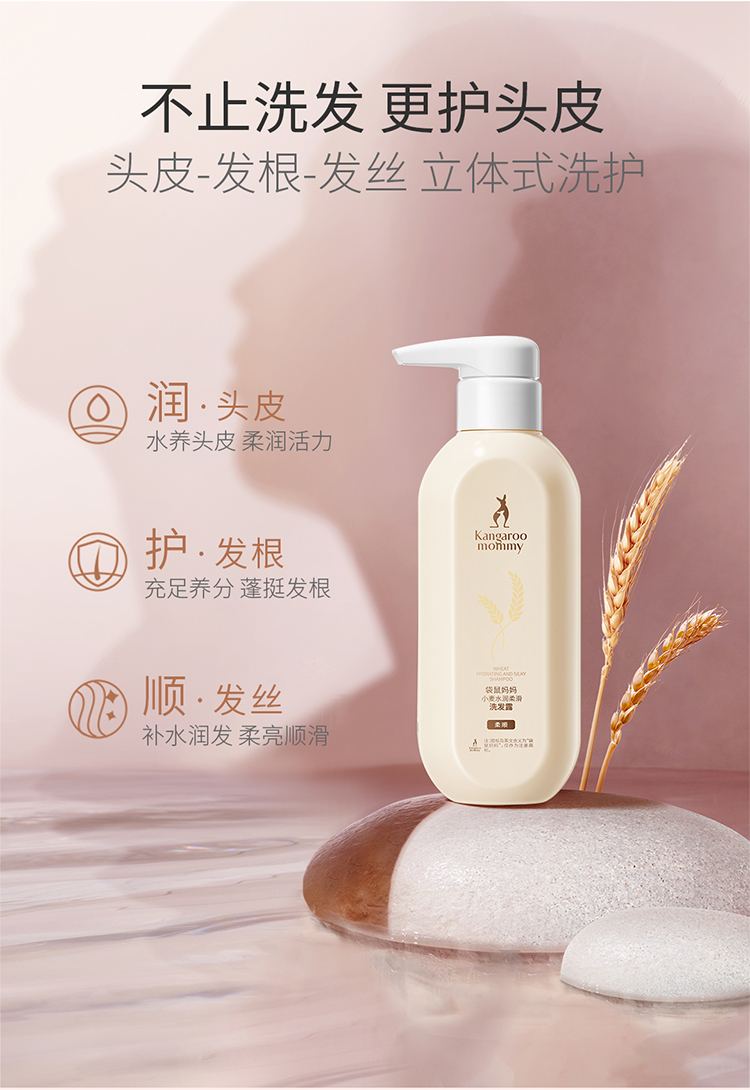 【自营】 袋鼠妈妈 准妈妈孕期专用柔顺 洗发露 小麦水润柔滑/茶籽清爽控油/雪草舒缓去屑 300g
