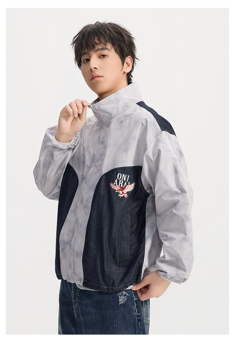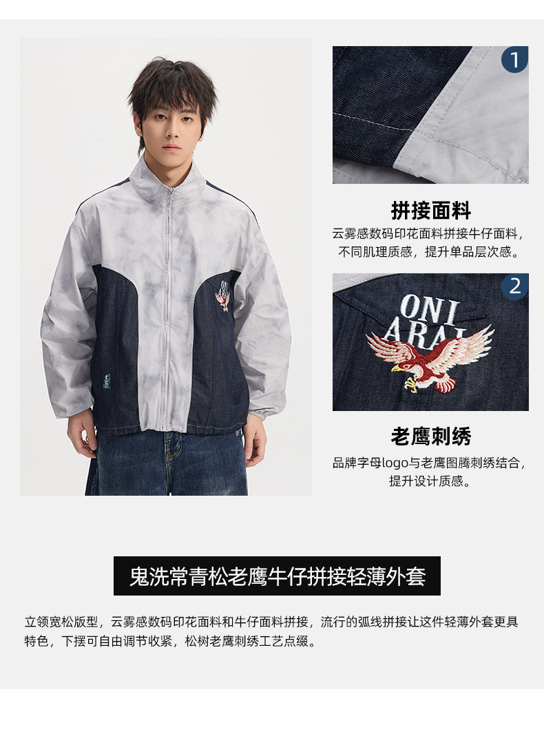 ONIARAI/鬼洗26春季新品鬼洗常青松老鹰牛仔拼接轻薄外套 B340256