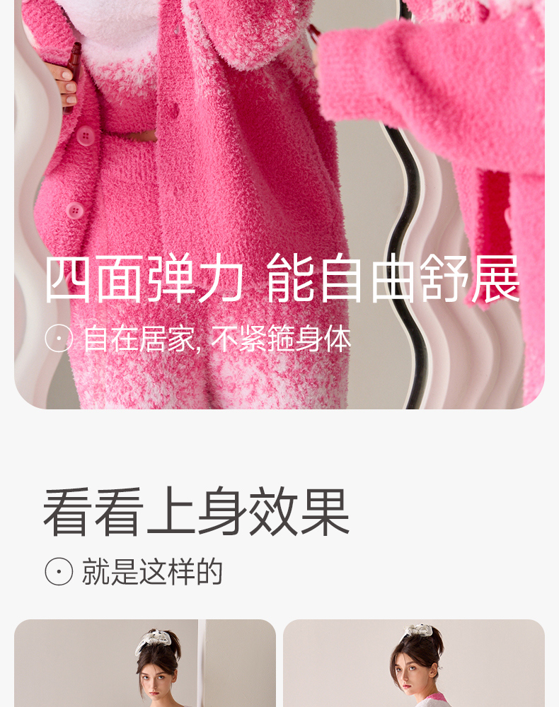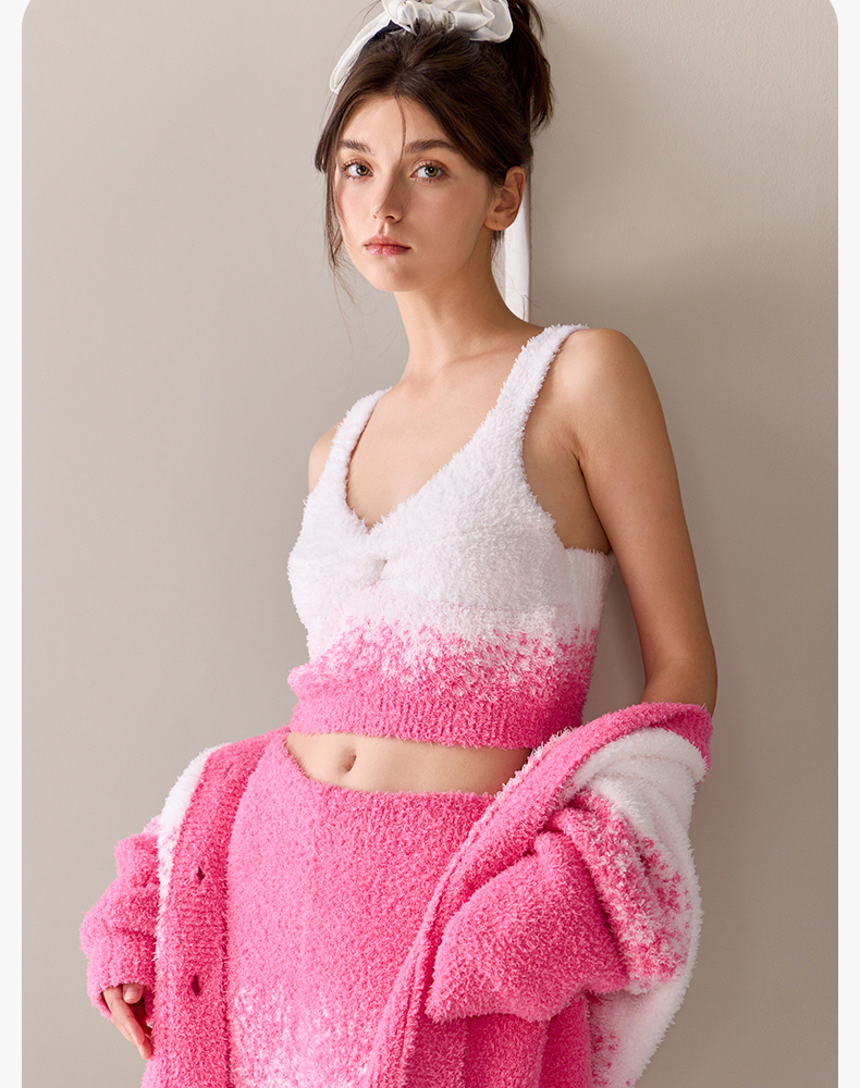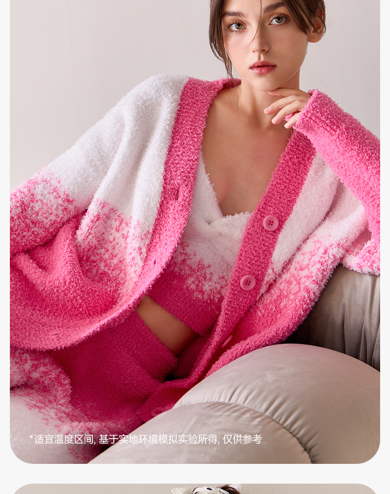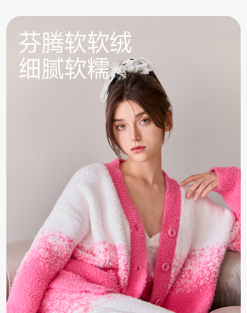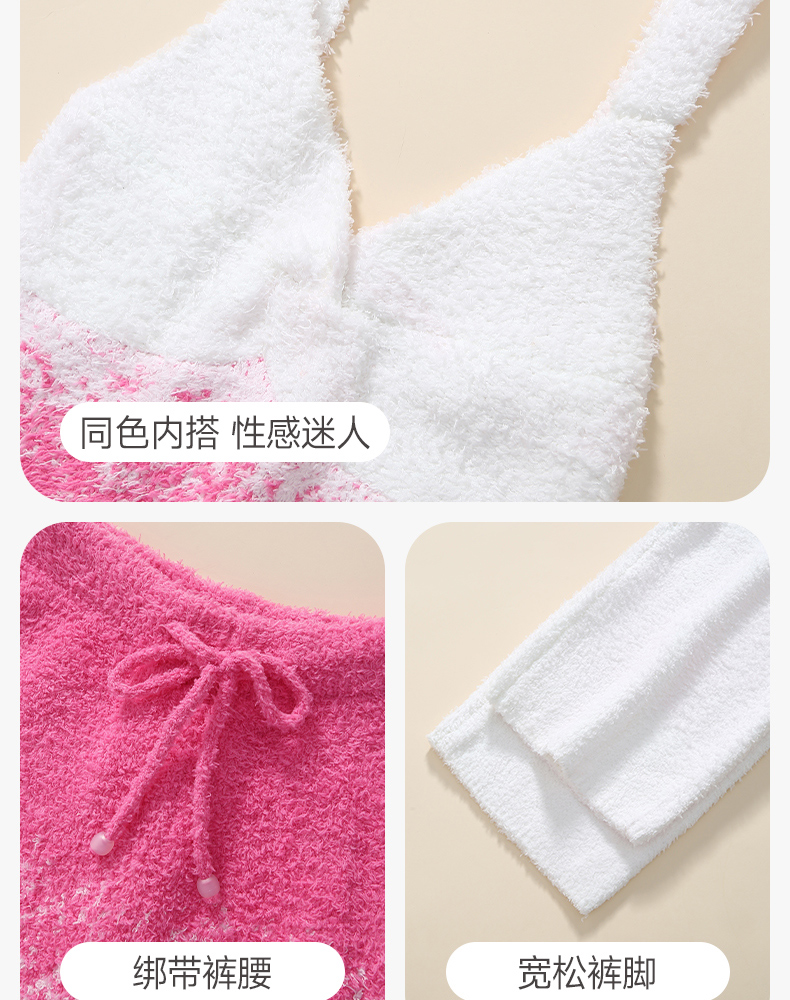 芬腾睡衣女半边绒新款秋冬季吊带背心三件套加厚保暖珊瑚绒家居服